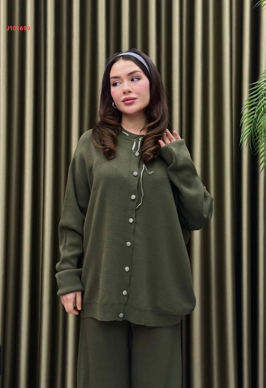 طقم بنطال تريكو وجاكيت بأزرار وربطة