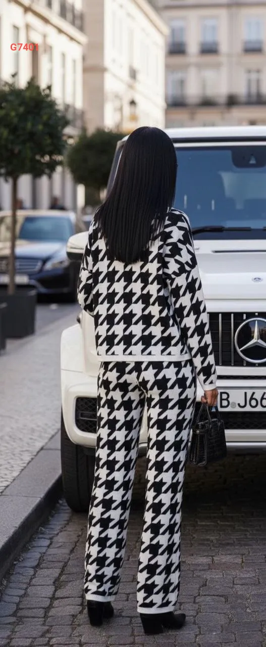 طقم بنطال تريكو منقوش مع كنزة