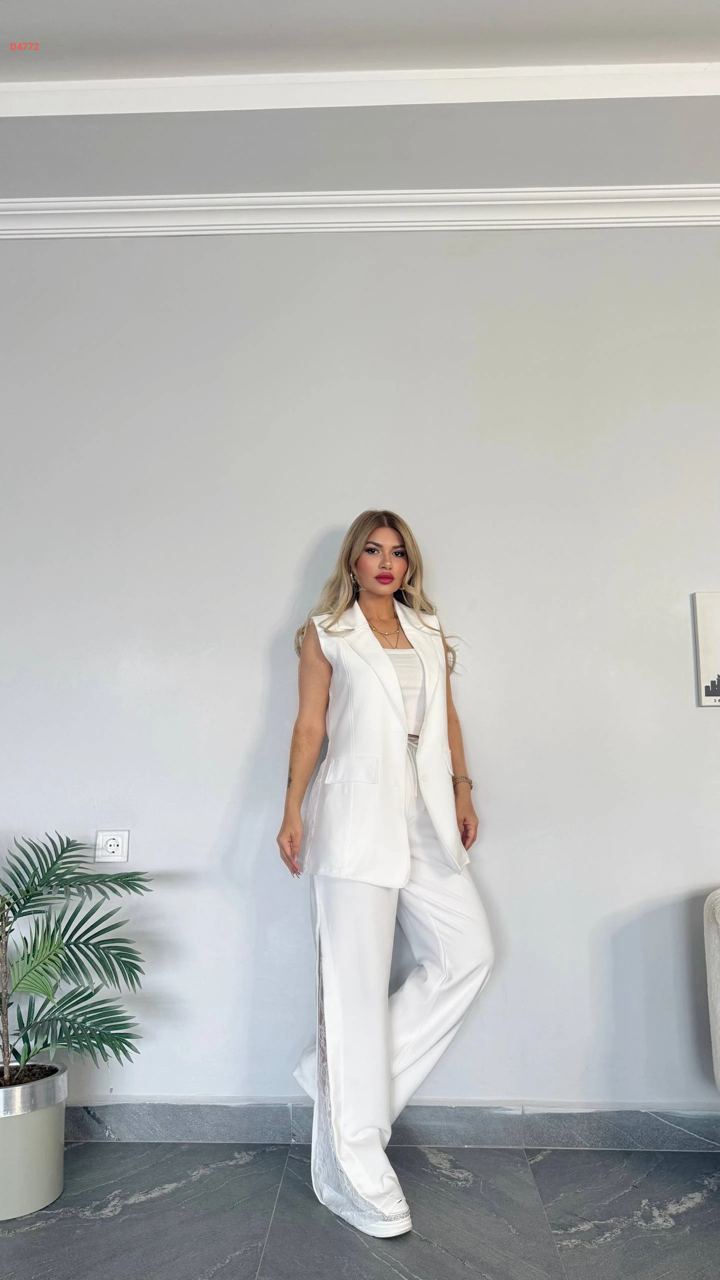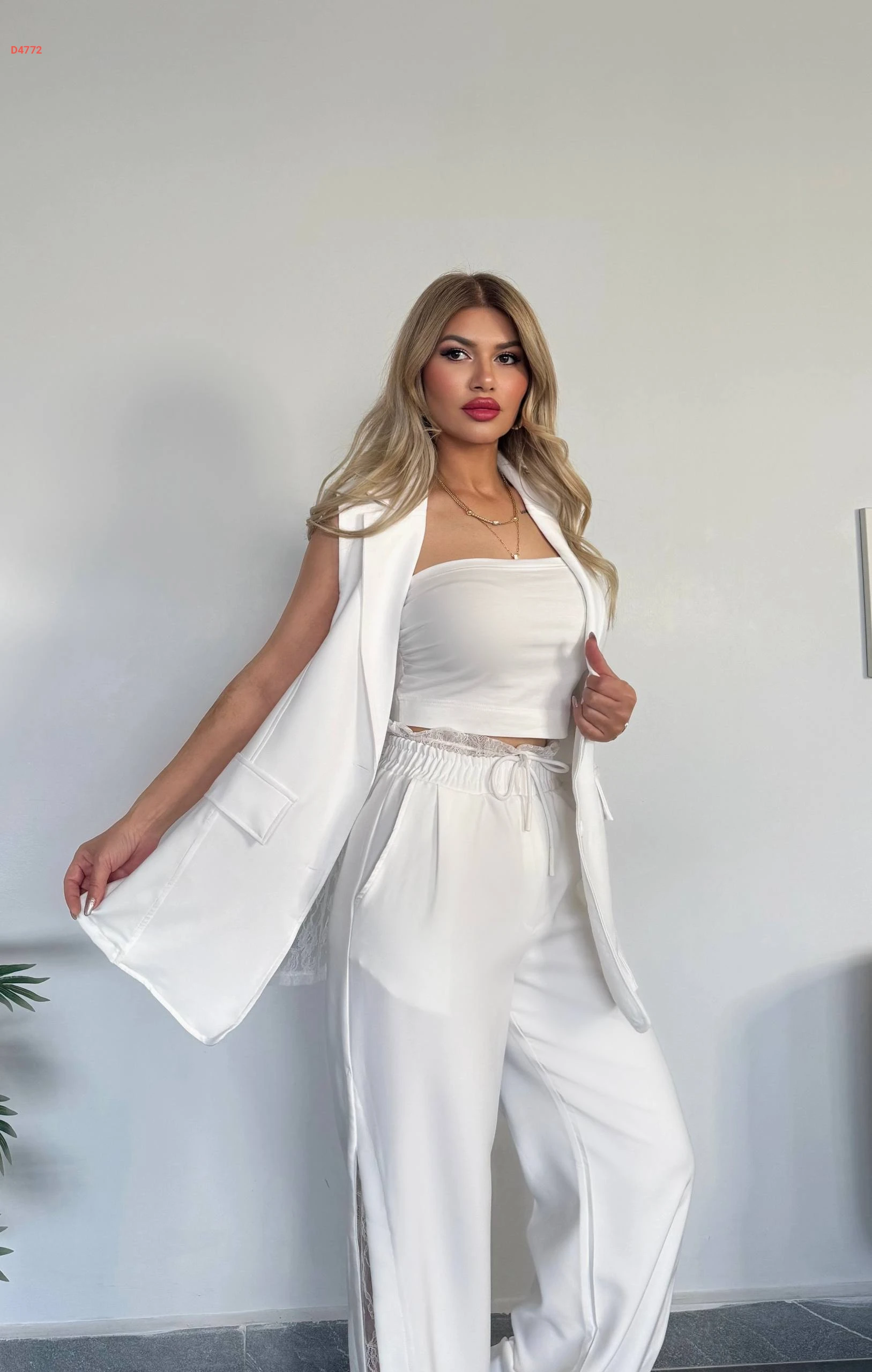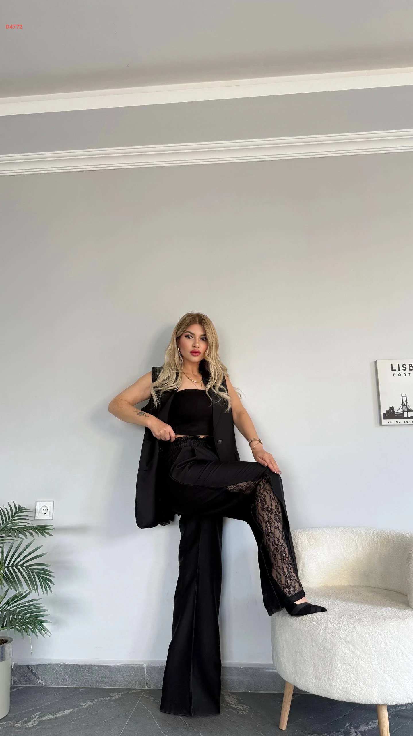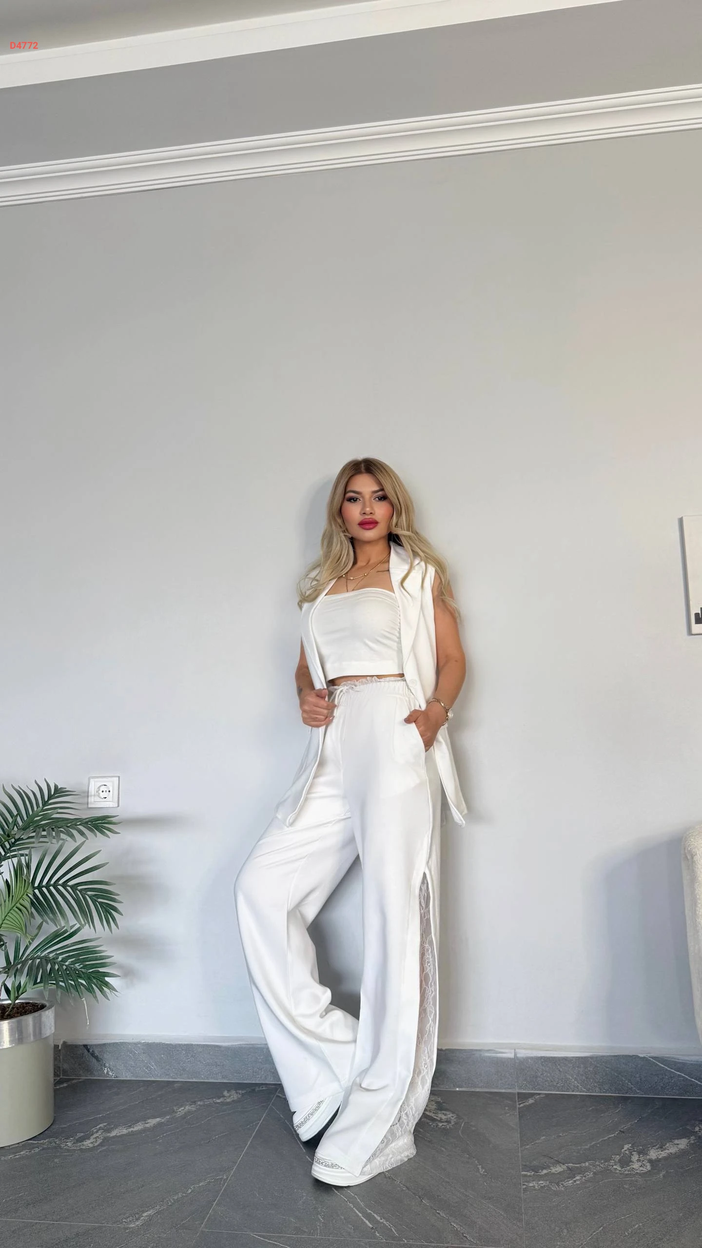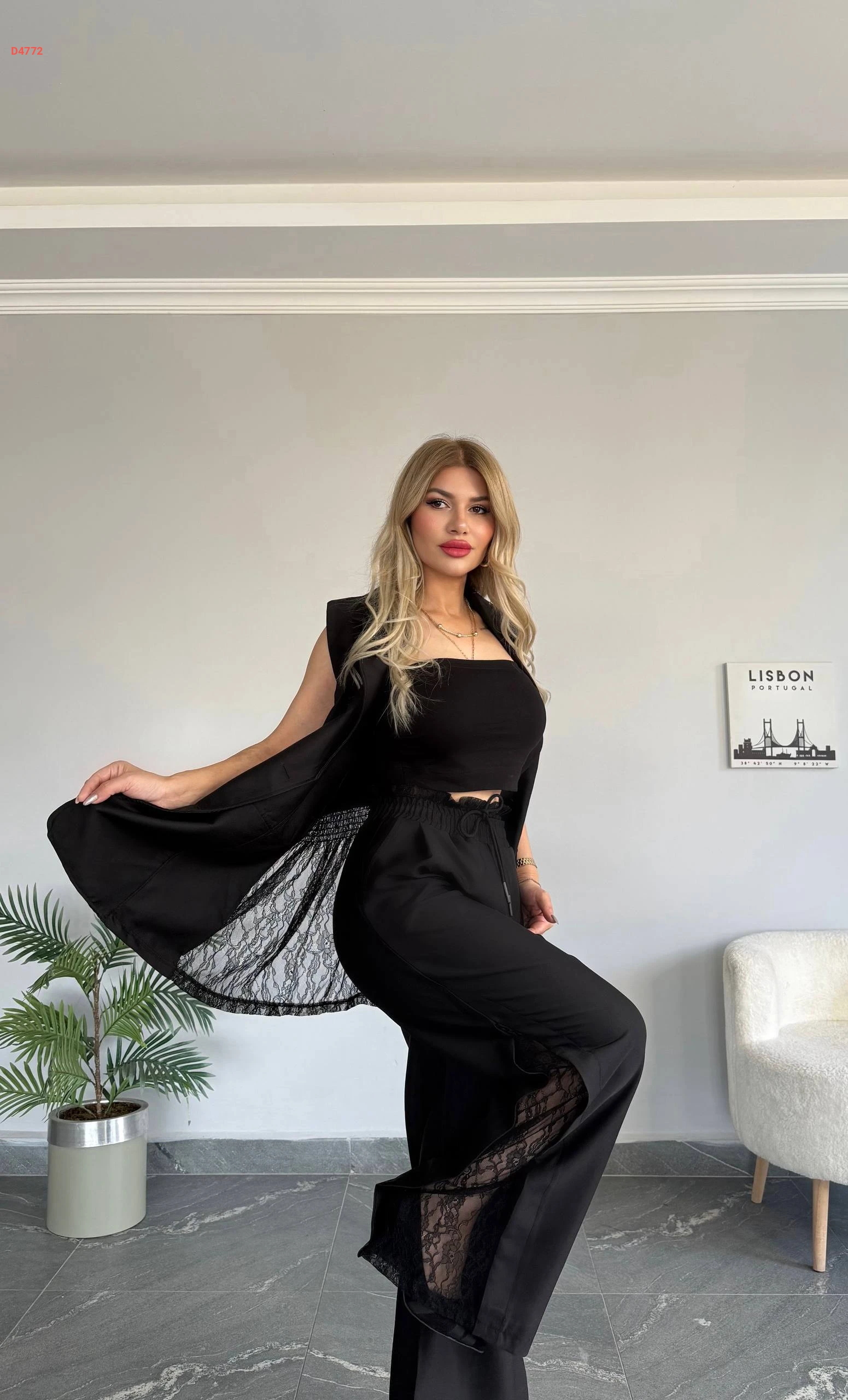 طقم بنطال مكلف دانتيل مع توب ويلك