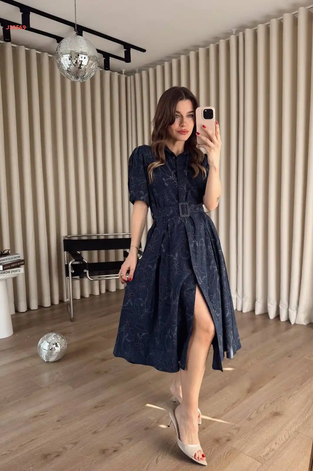 فستان طويل أزرار مع حزام باك...