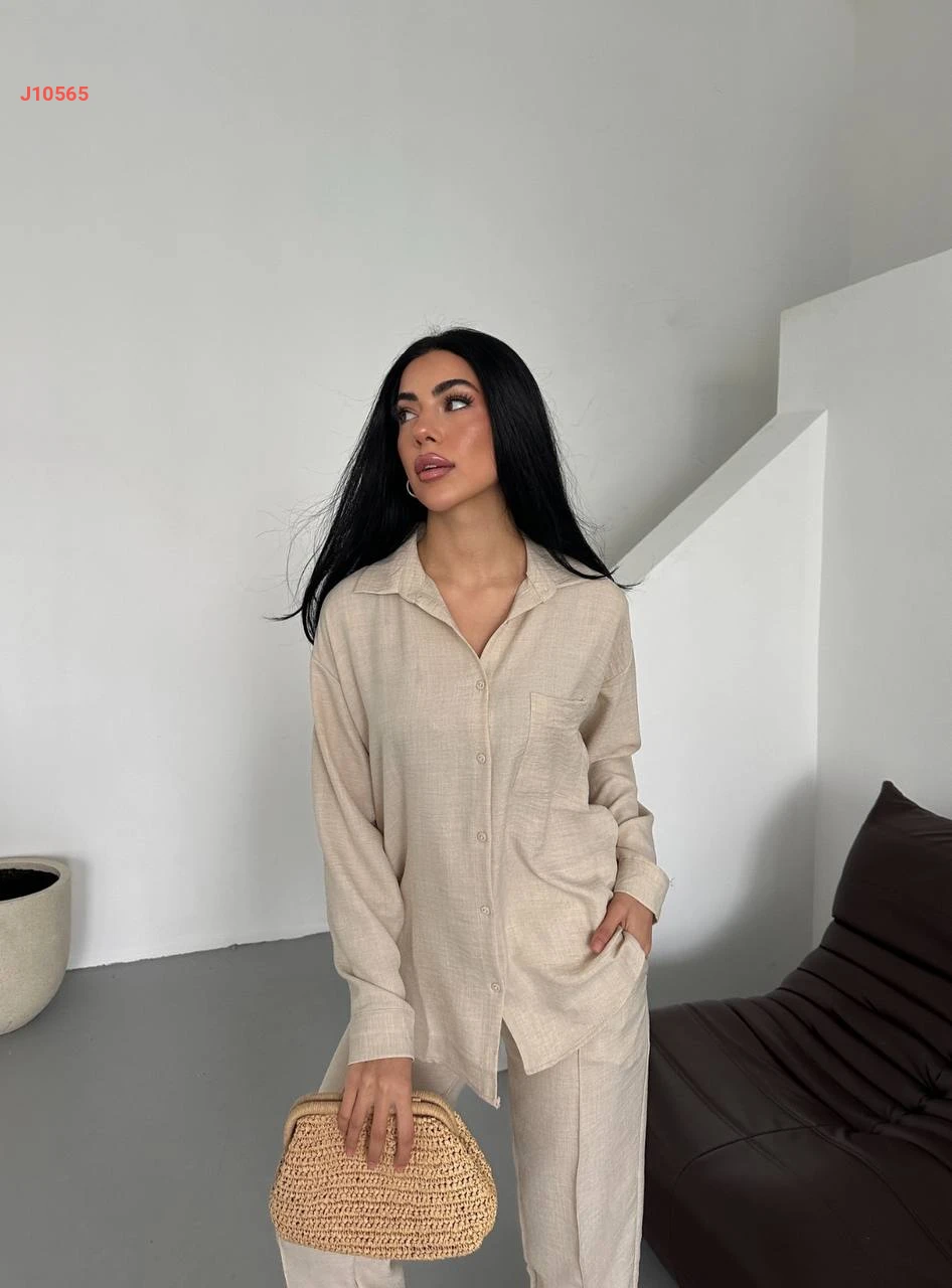 طقم بنطال كتان مع قميص