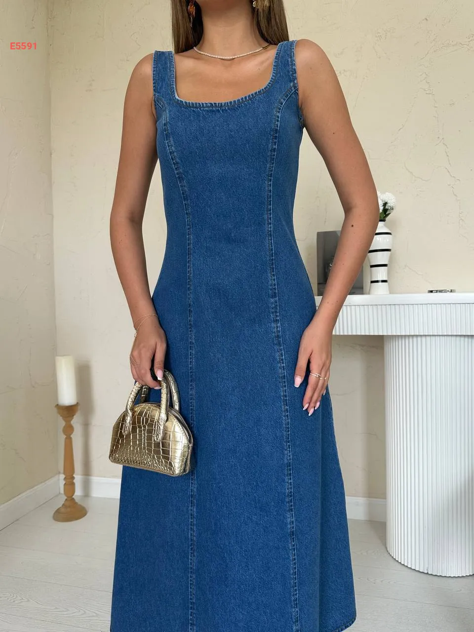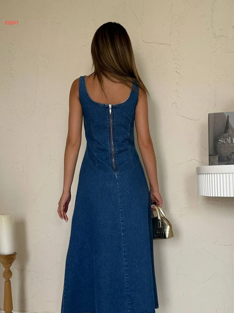 فستان جينز حفر طويل بسحاب خلفي