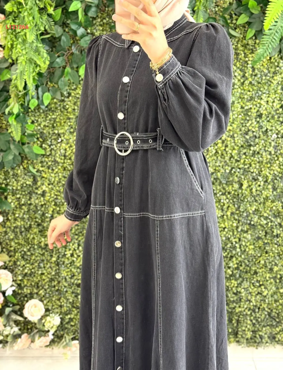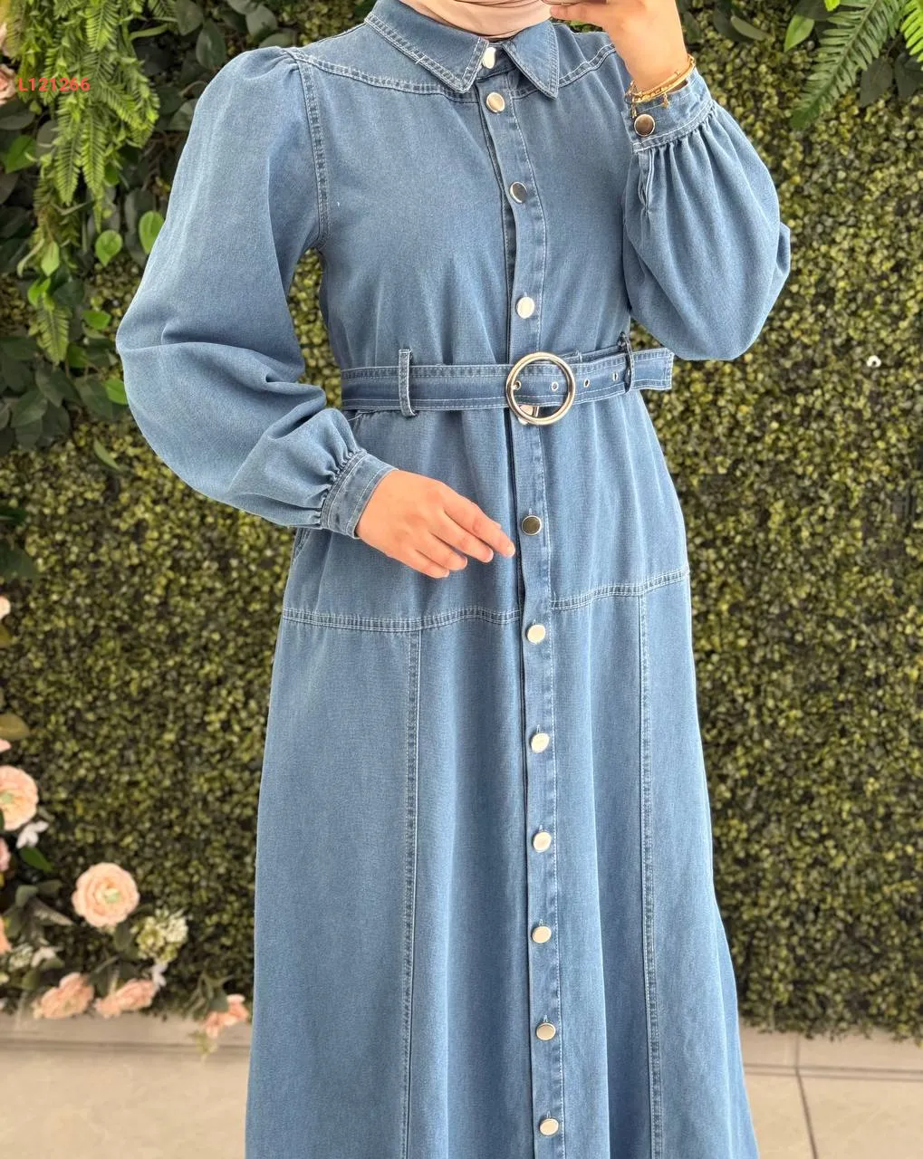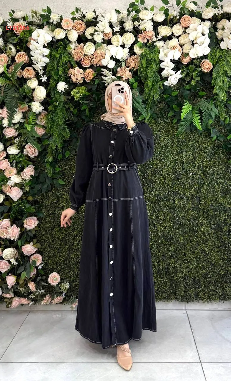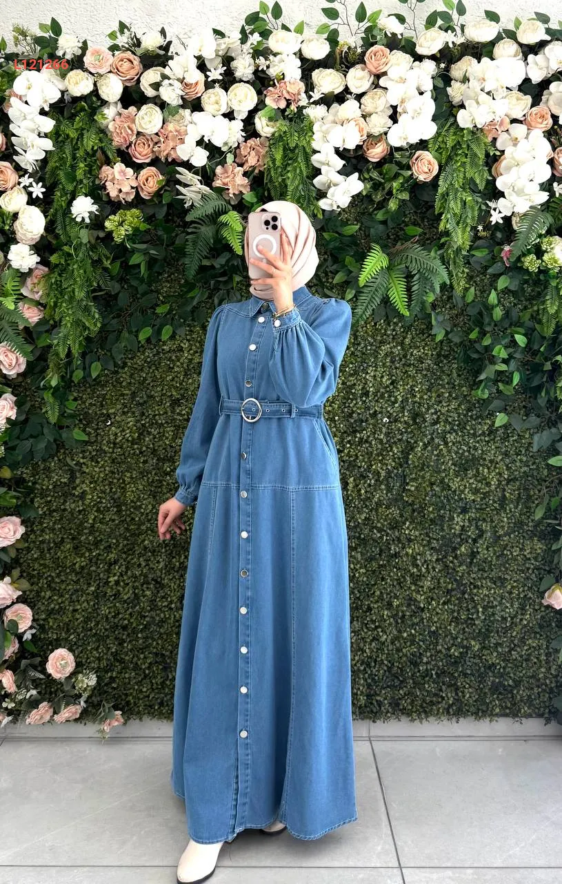 فستان جينز طويل بأزرار وحزام