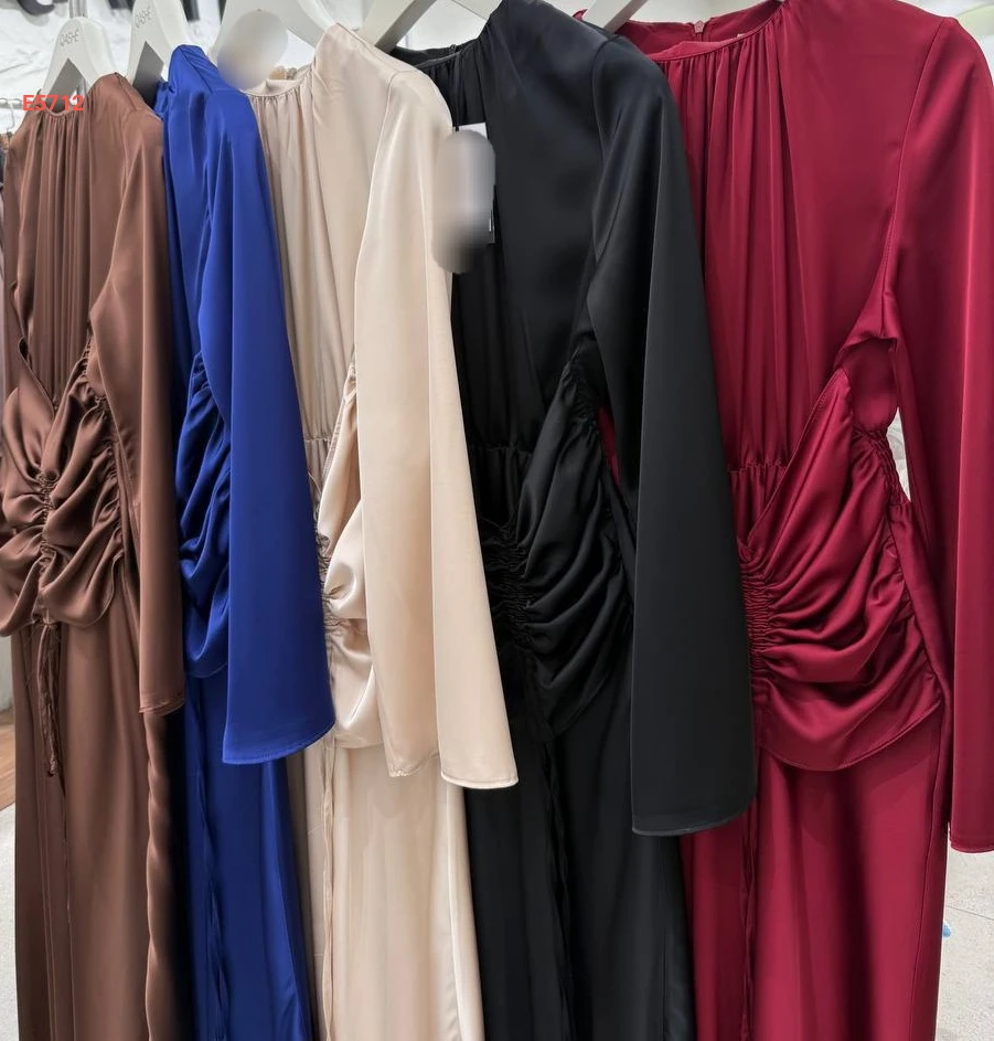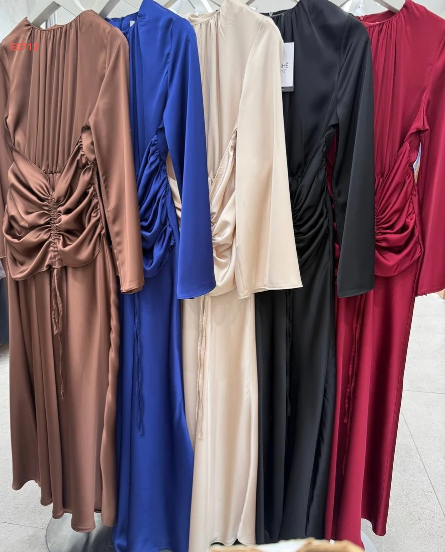 فستان طويل مجمع من الخصر