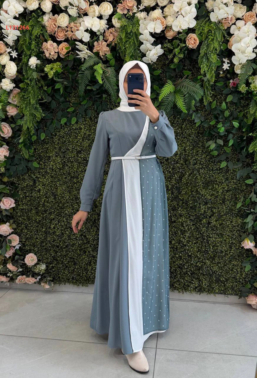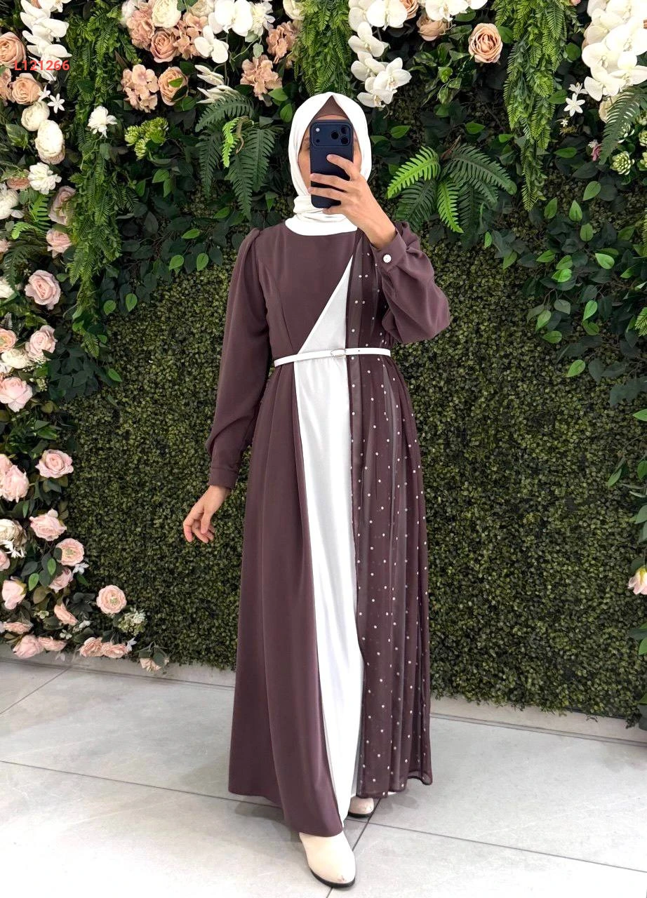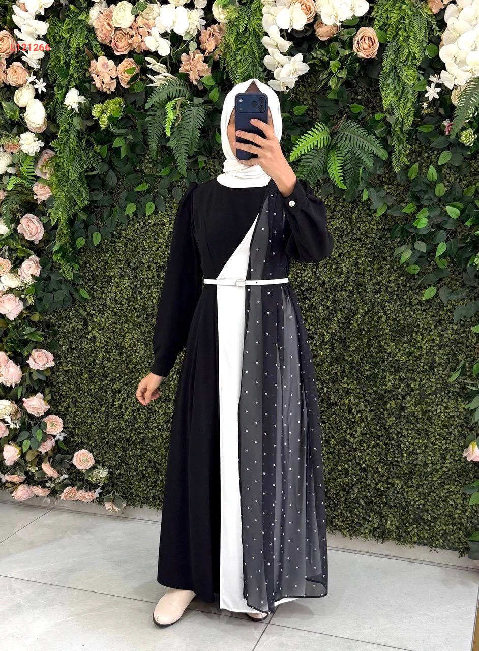 فستان طويل كريستال كريب وشيفون منقط