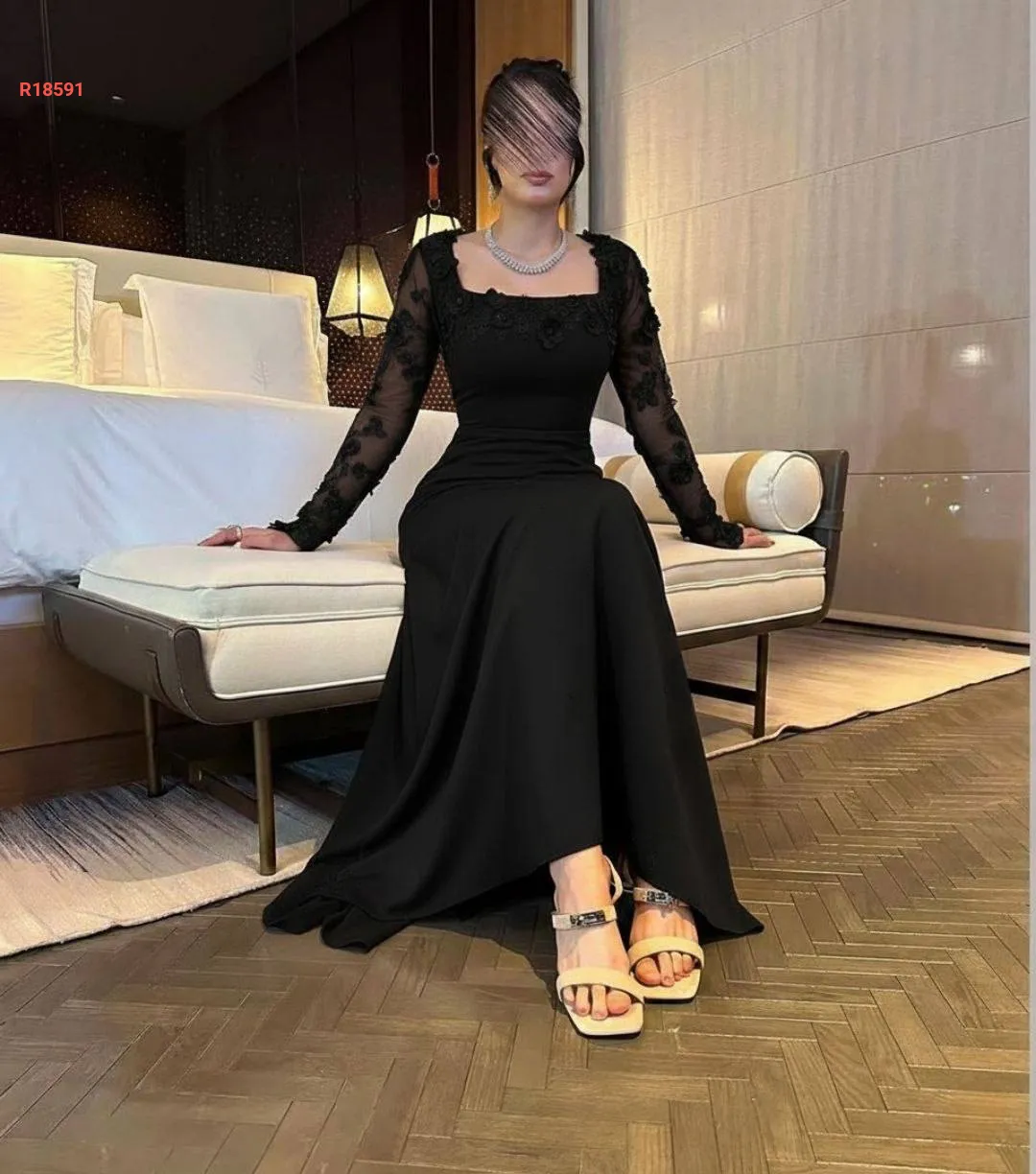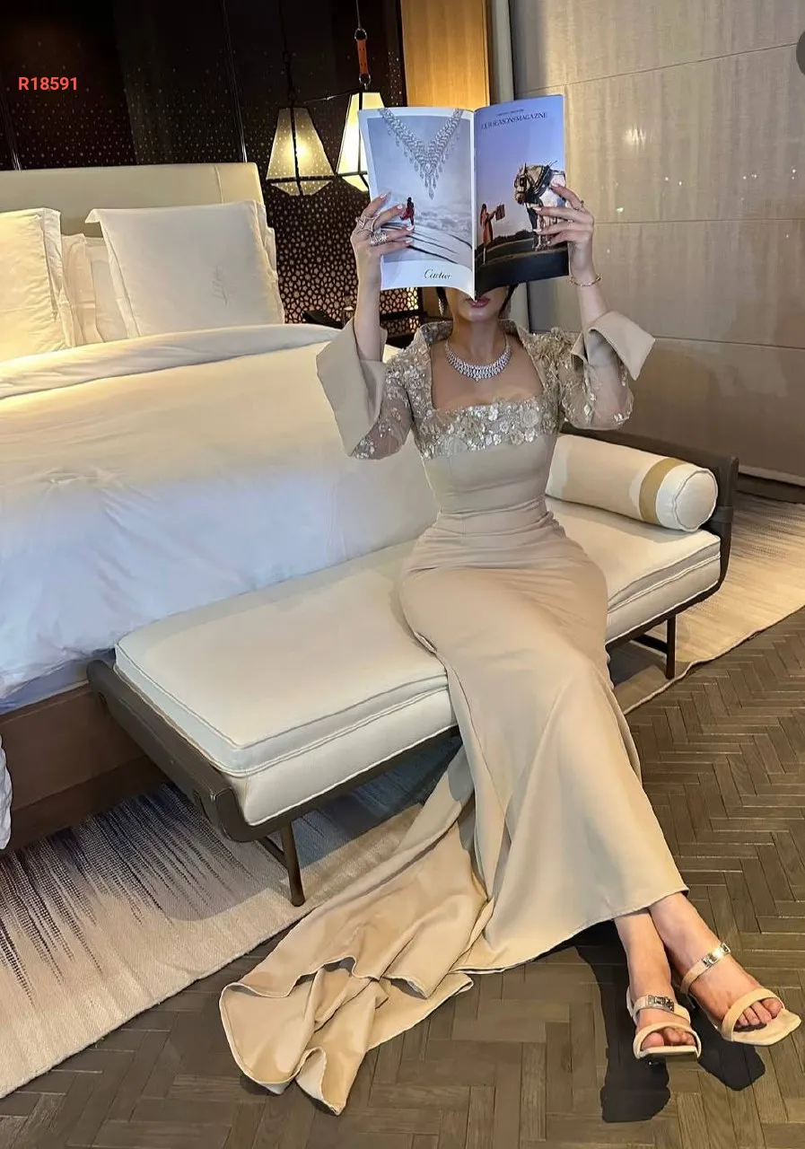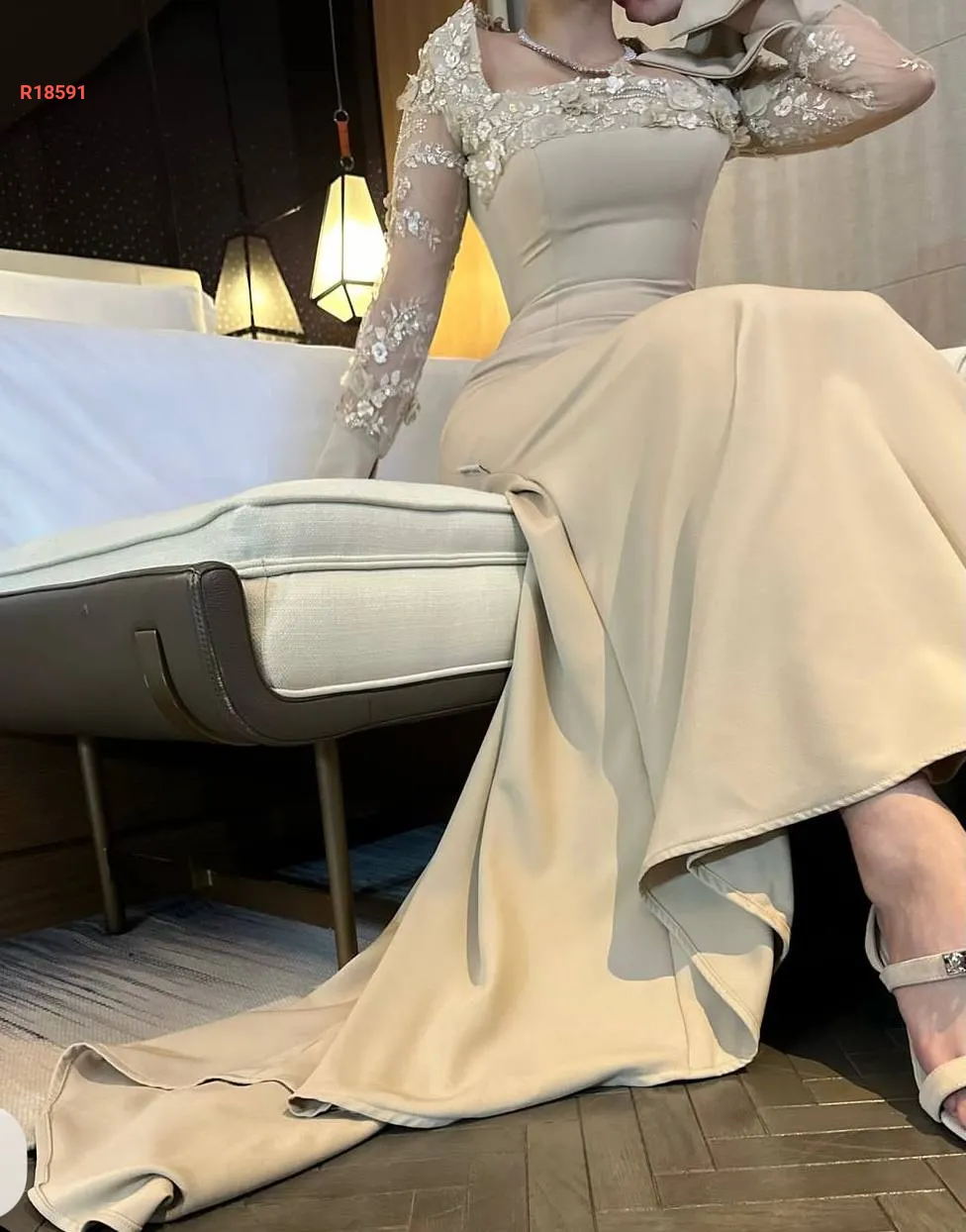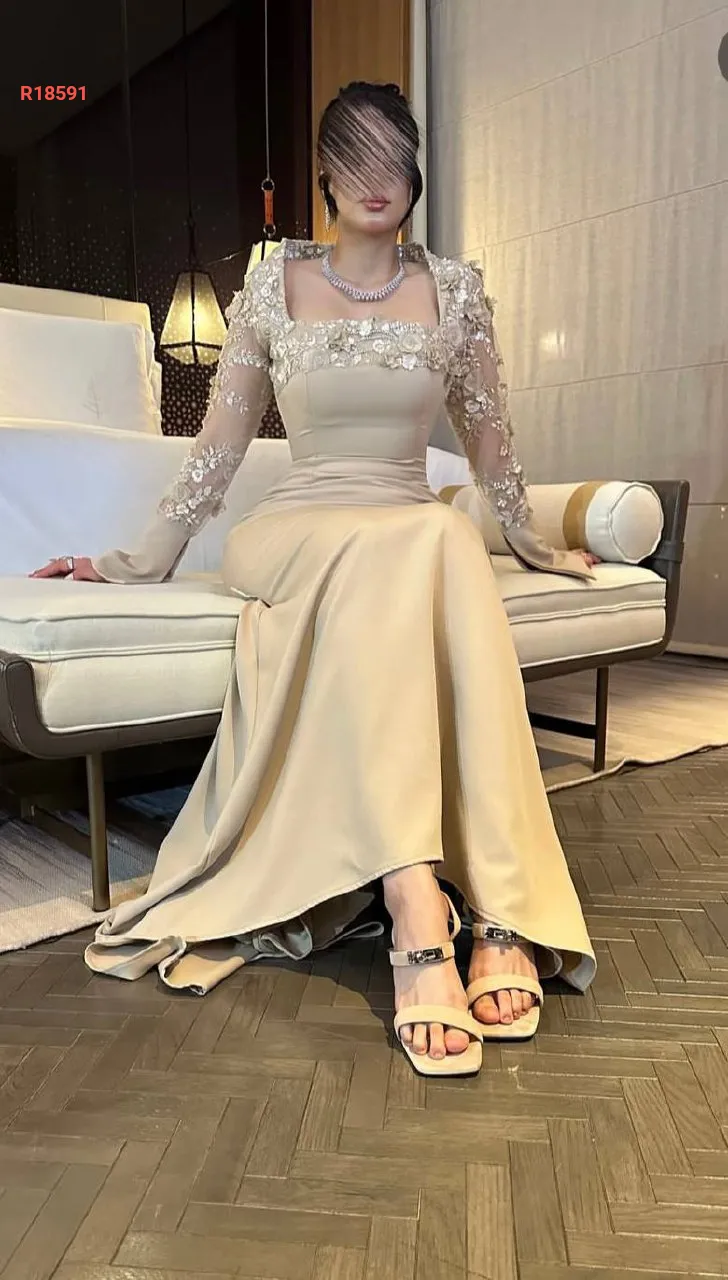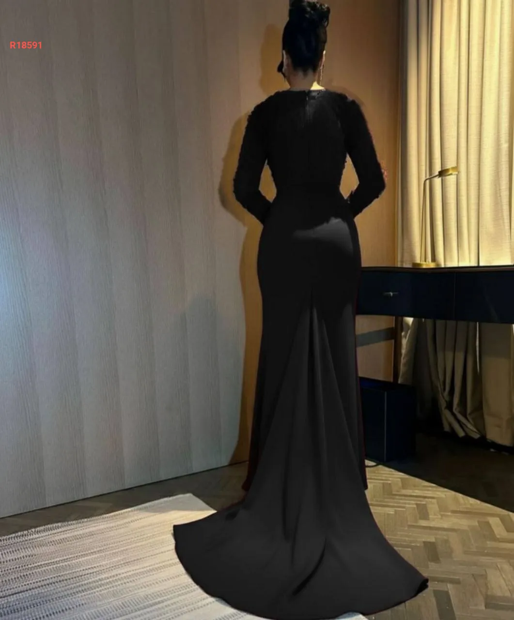 فستان سهره – تصميم فاخر 🔹 المواصفات: • خامة دبل إيطالي فاخرة • تطريز متقن مع شَكّ و وردات تضيف لمسة راقية • المقاسات: 38 – 48