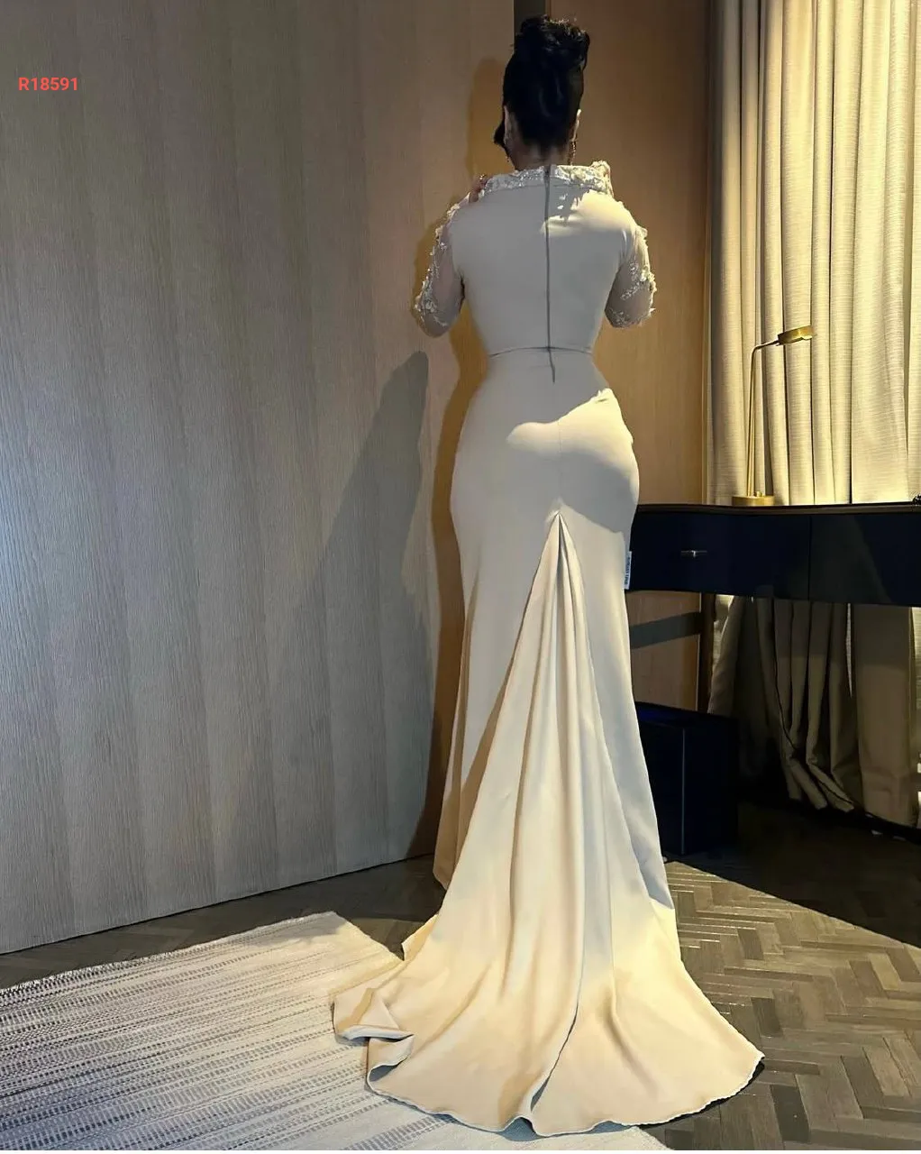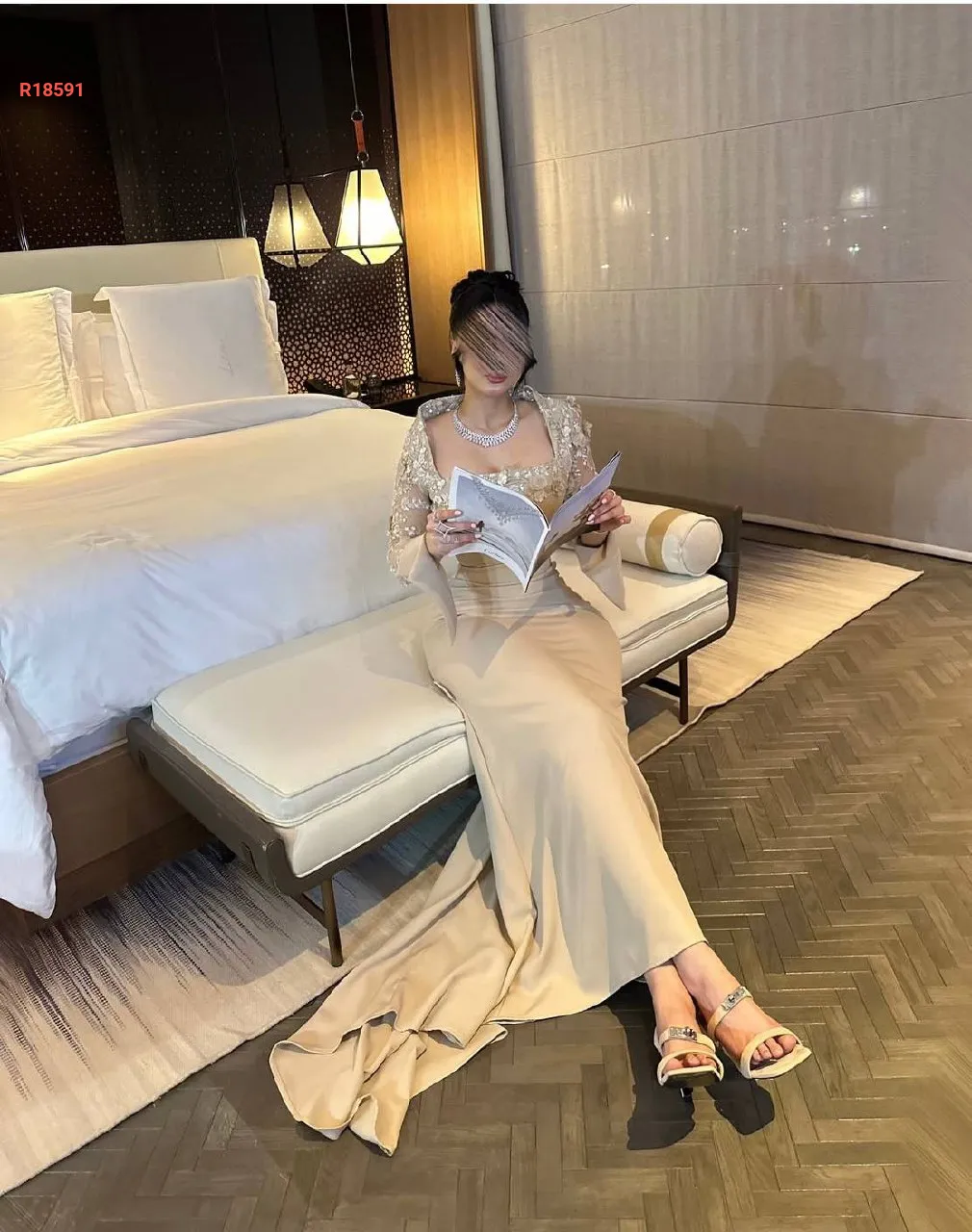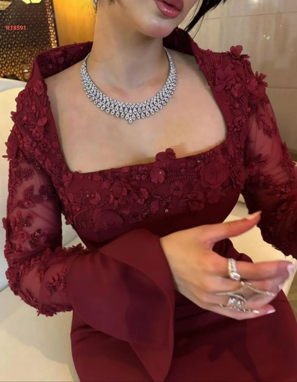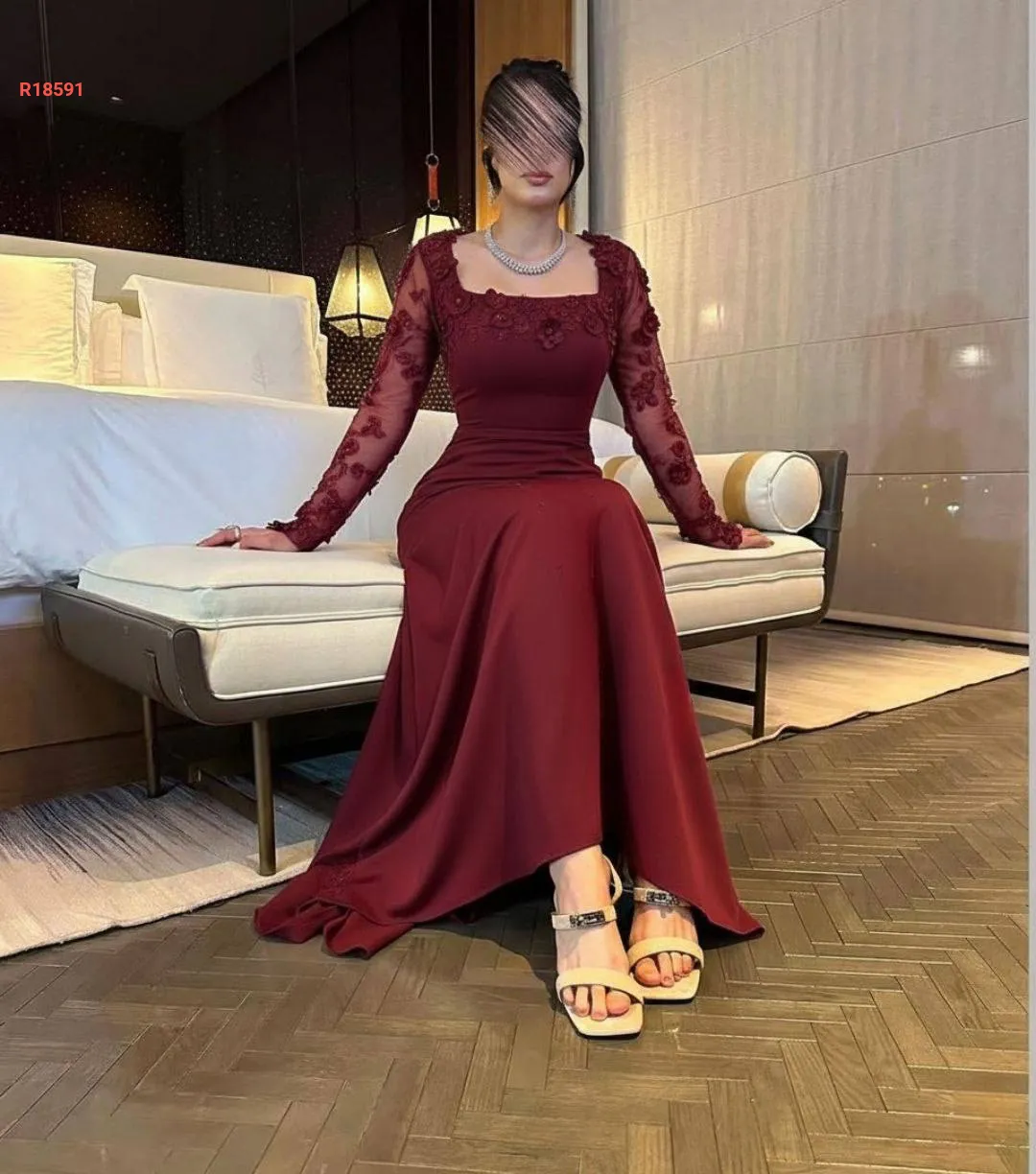 فستان سهره – تصميم فاخر 🔹 المواصفات: • خامة دبل إيطالي فاخرة • تطريز متقن مع شَكّ و وردات تضيف لمسة راقية • المقاسات: 38 – 48