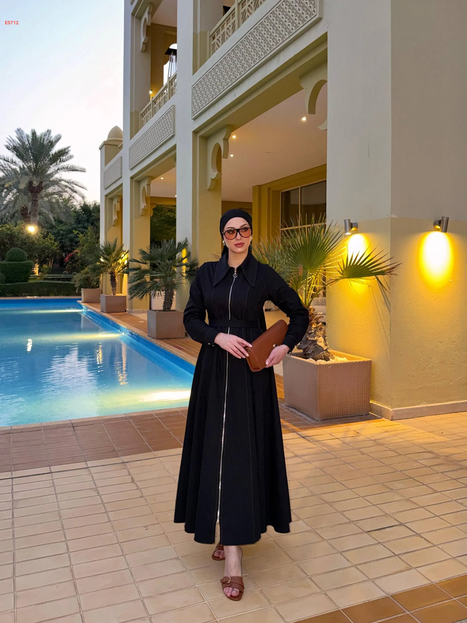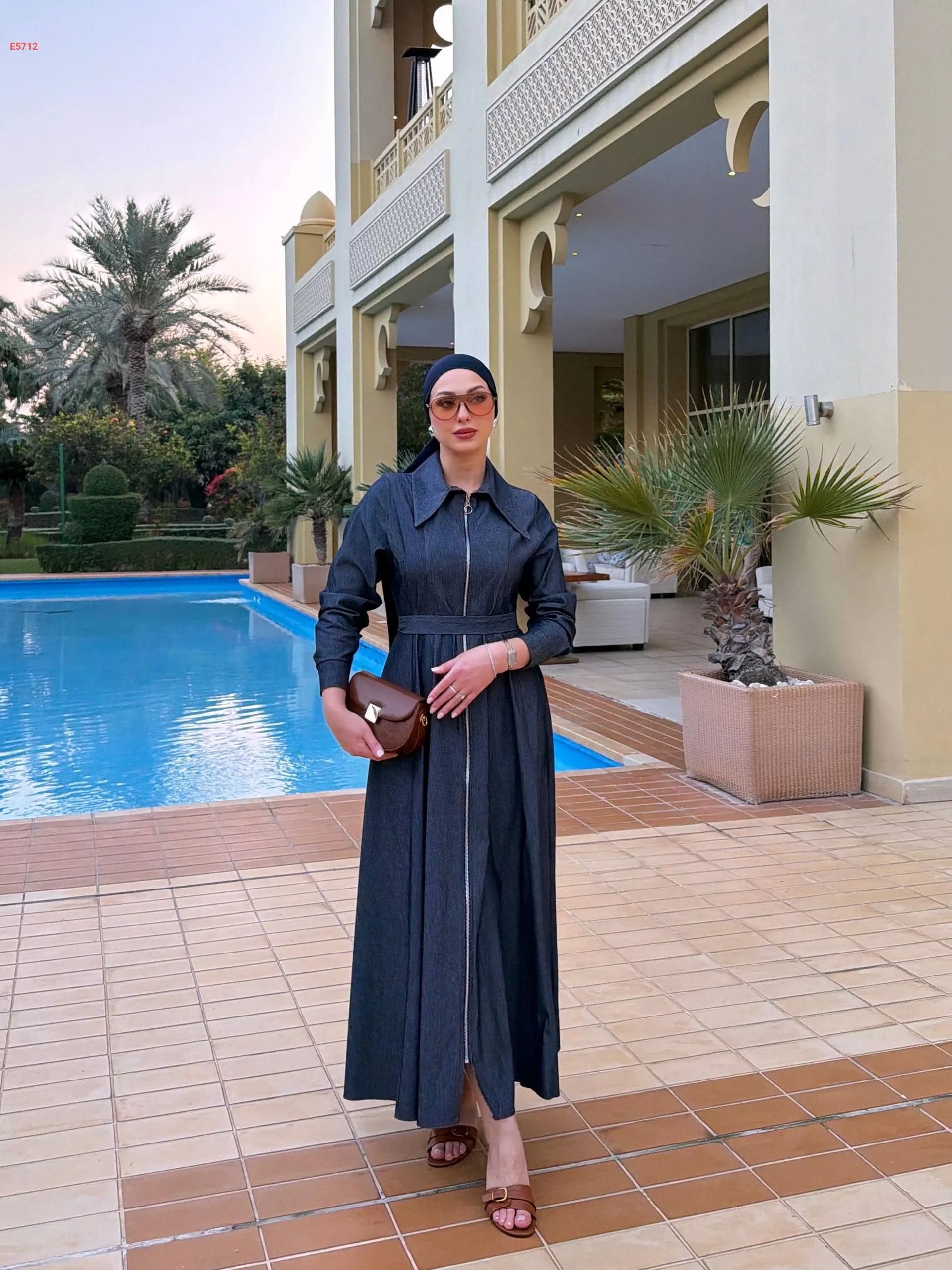 فستان طويل بسحاب وحزام