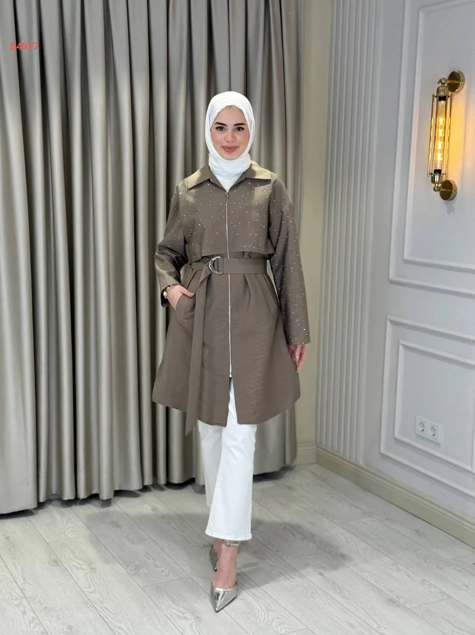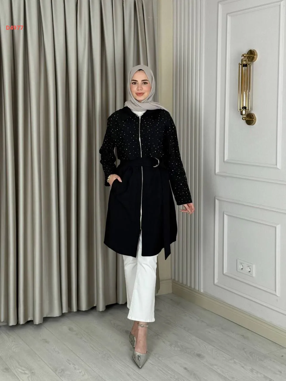 جاكيت طويل بتفاصيل حجرية