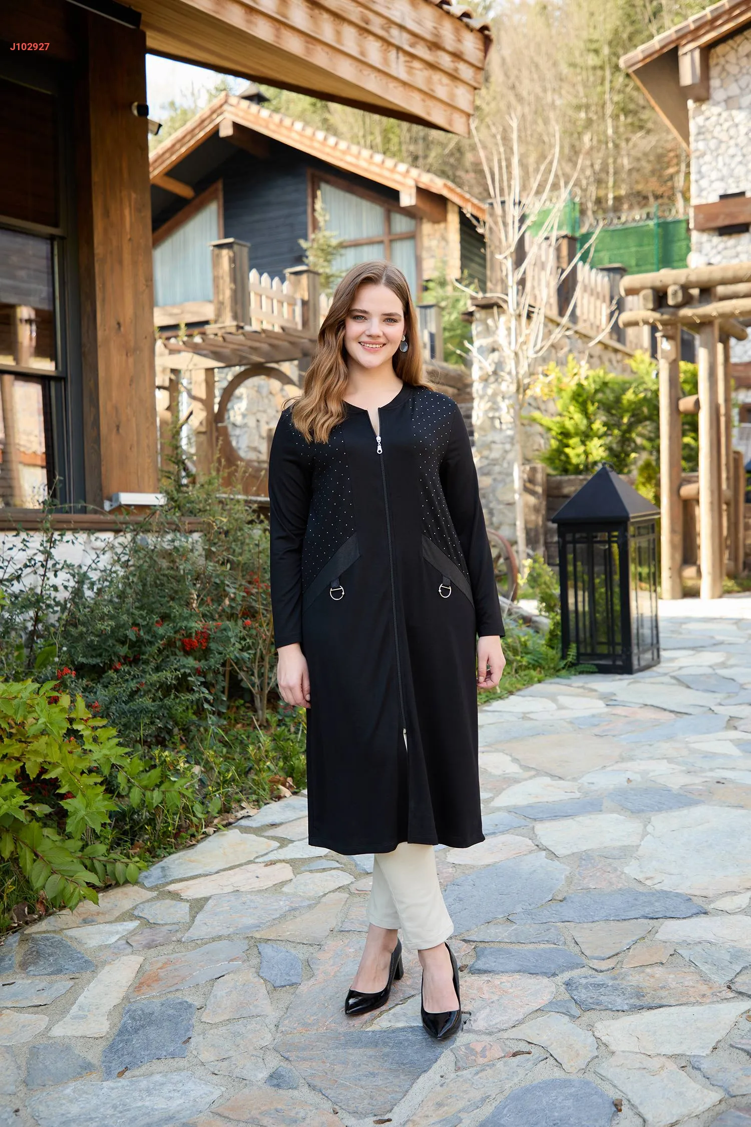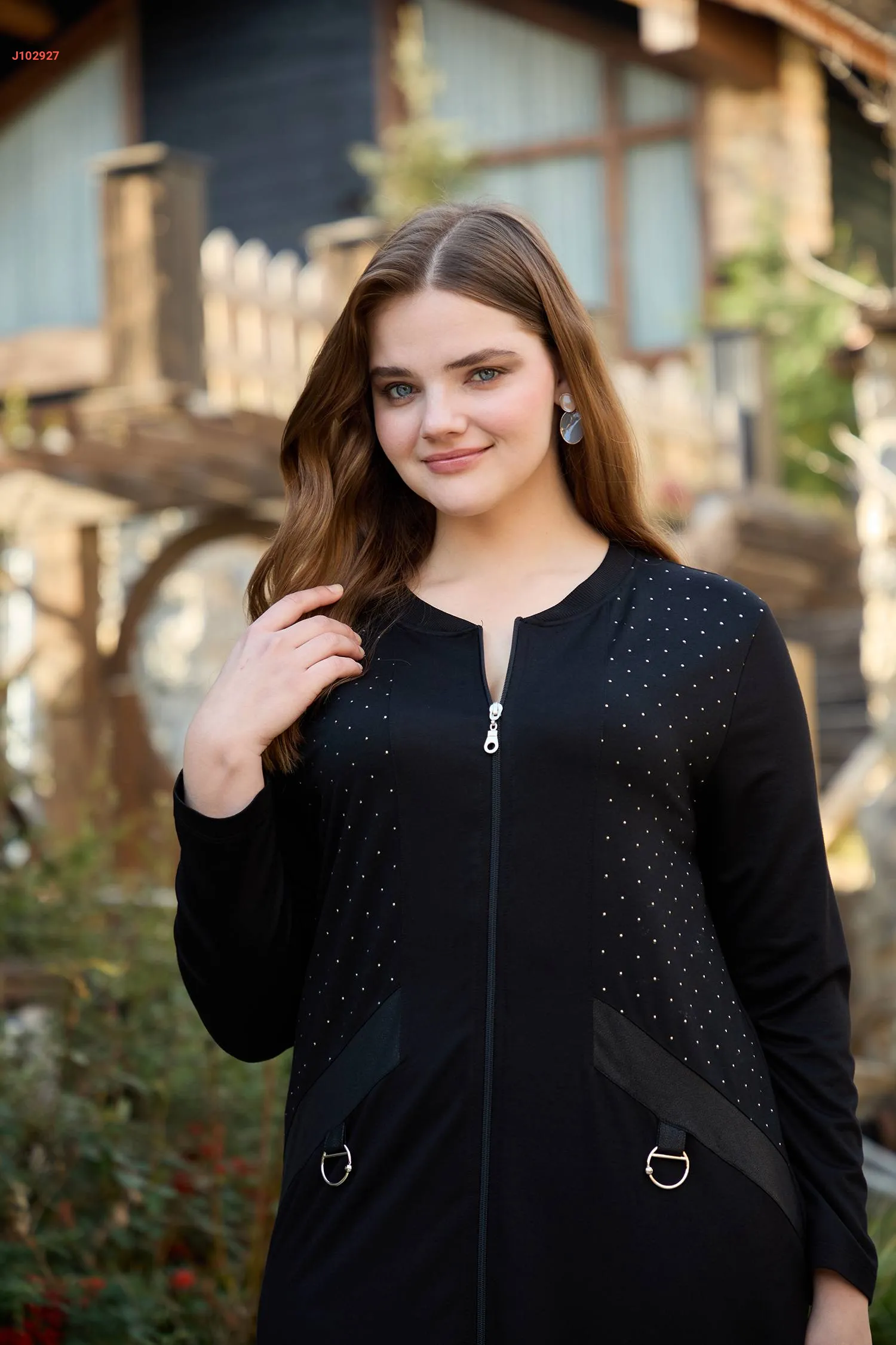 جاكيت طويل بسحاب وستراس