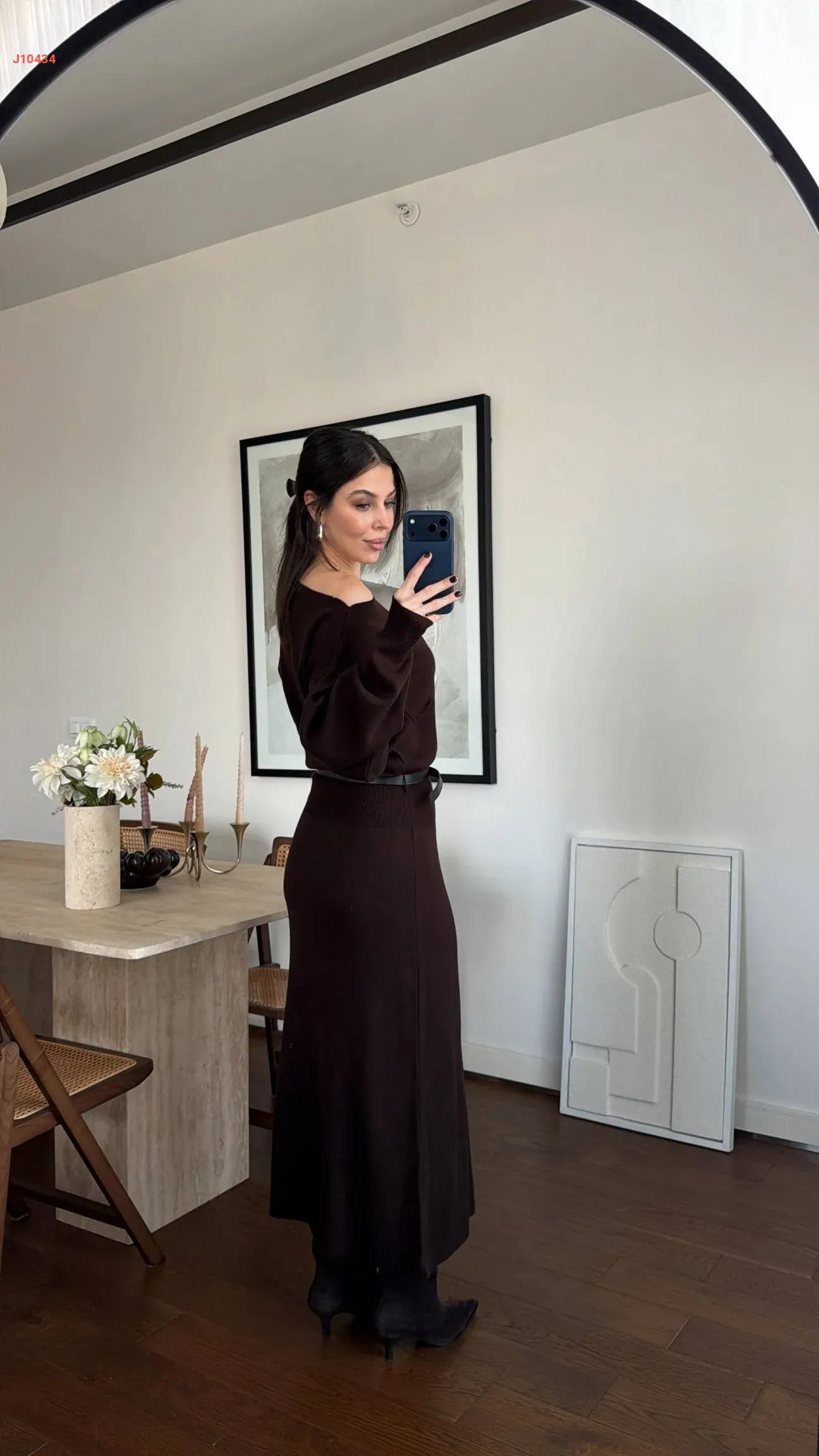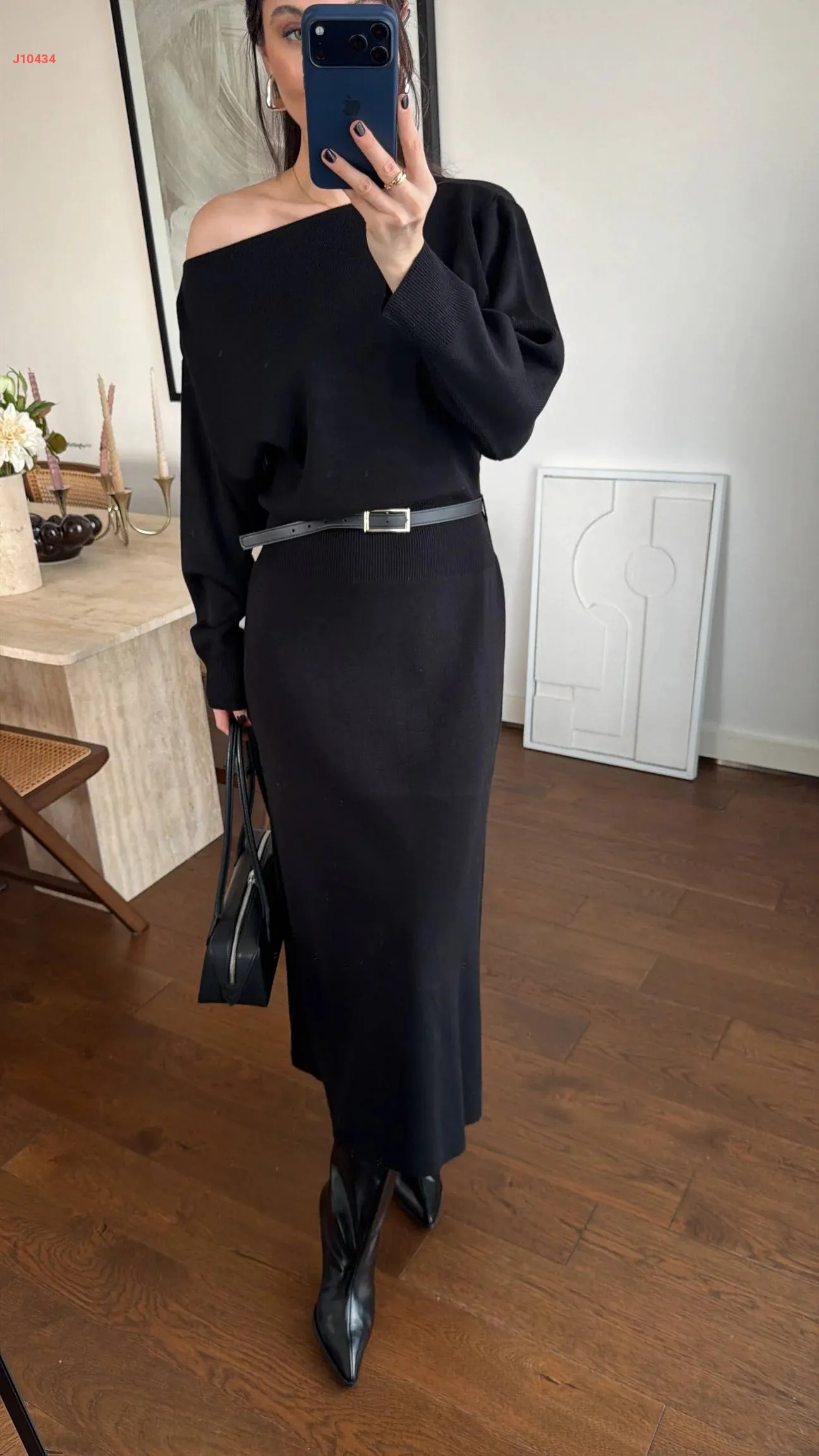 فستان تريكو طويل بكتف منسدل
