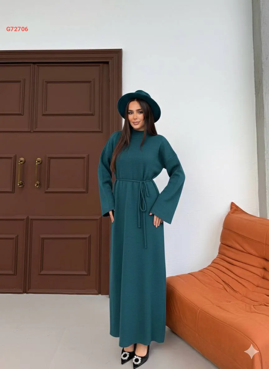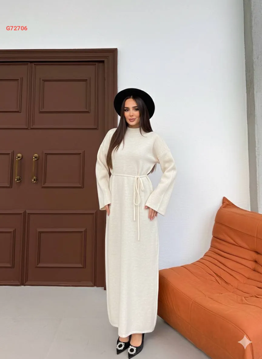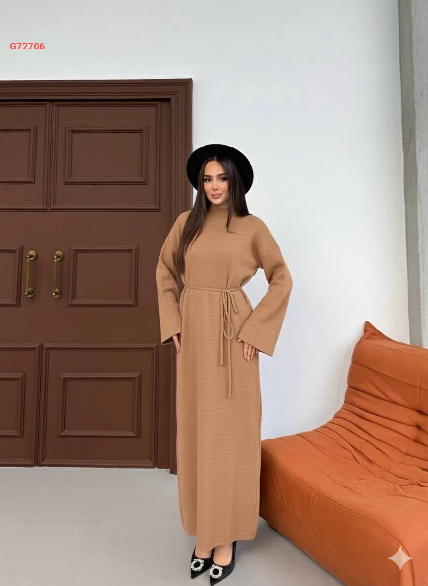 فستان تريكو طويل بزنار ربط