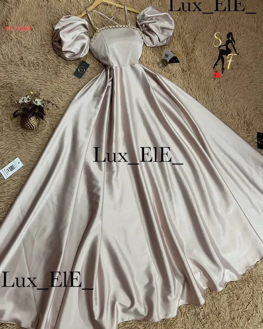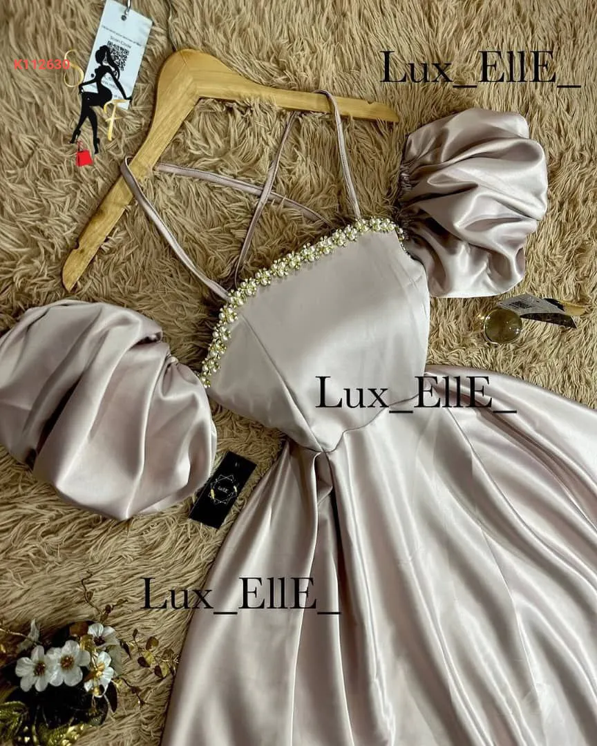 فستان ساتان تقيل ضهر رباط مع ستراس حجر ع صدر