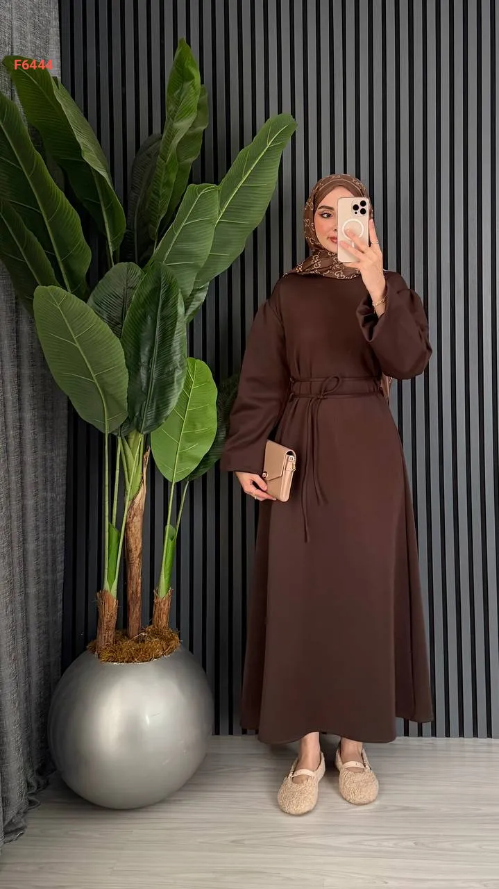 فستان شتوي طويل مع زنار