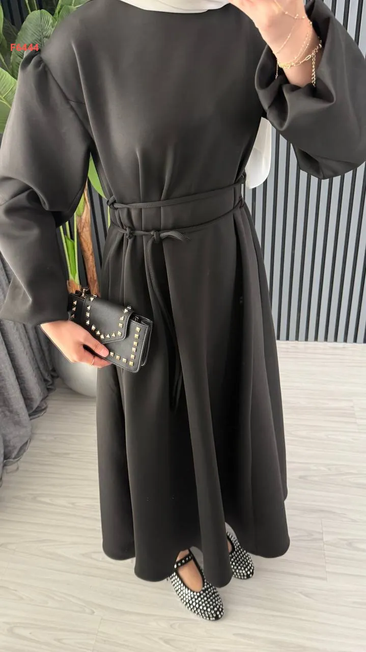 فستان سكوبا طويل بزنار ربط