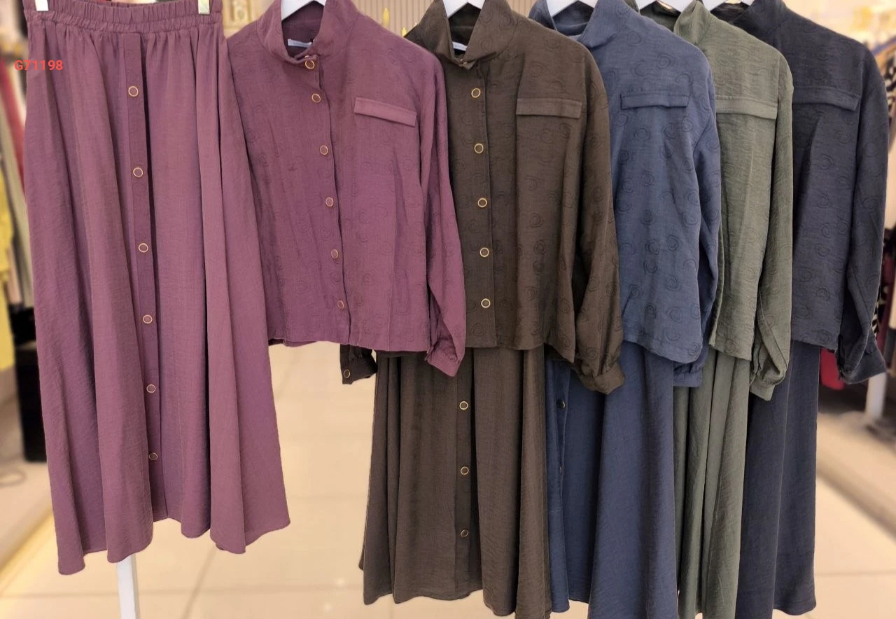 طقم تنورة طويل بأزرار