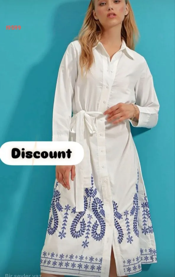 فستان كم طويل مطرز بأزرار