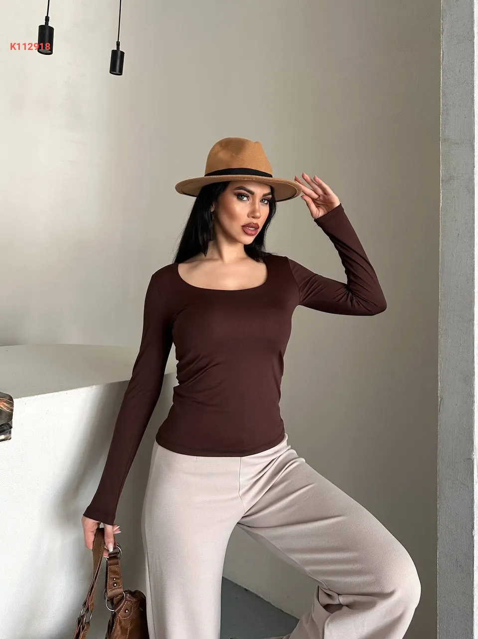 كنزة كم طويل بدي بياقة مدورة
