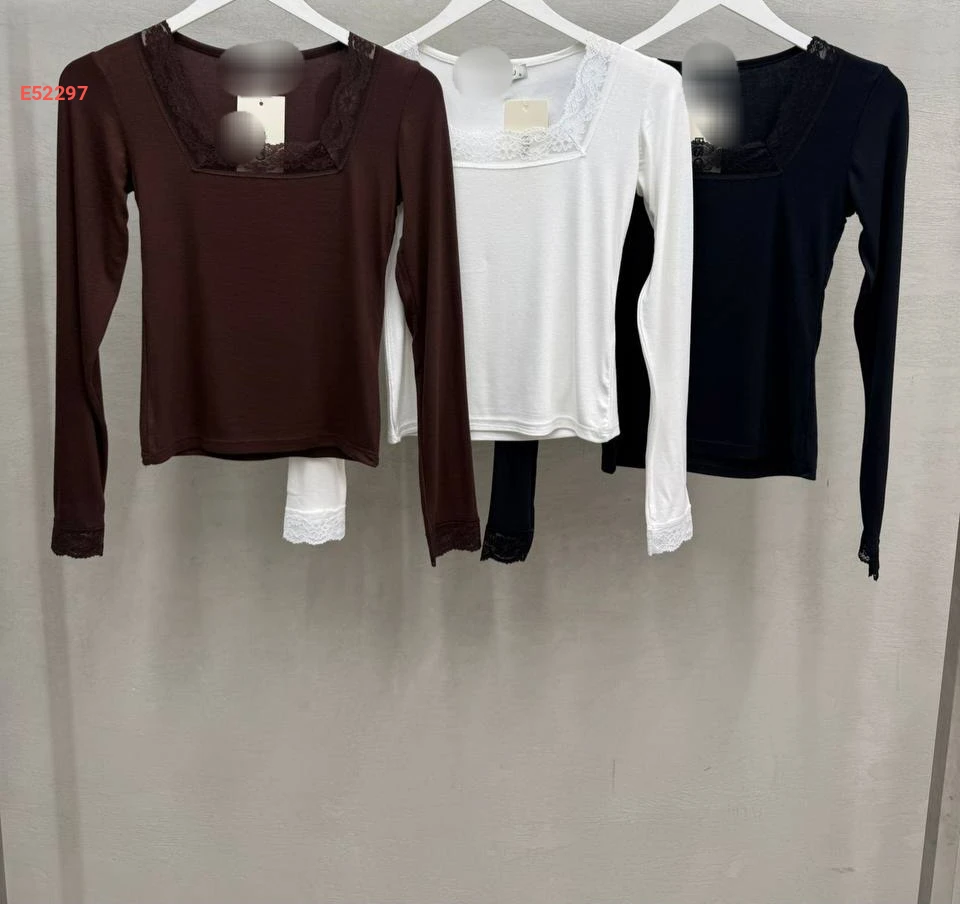 كنزة كم طويل قبة مربعة بدانتيل