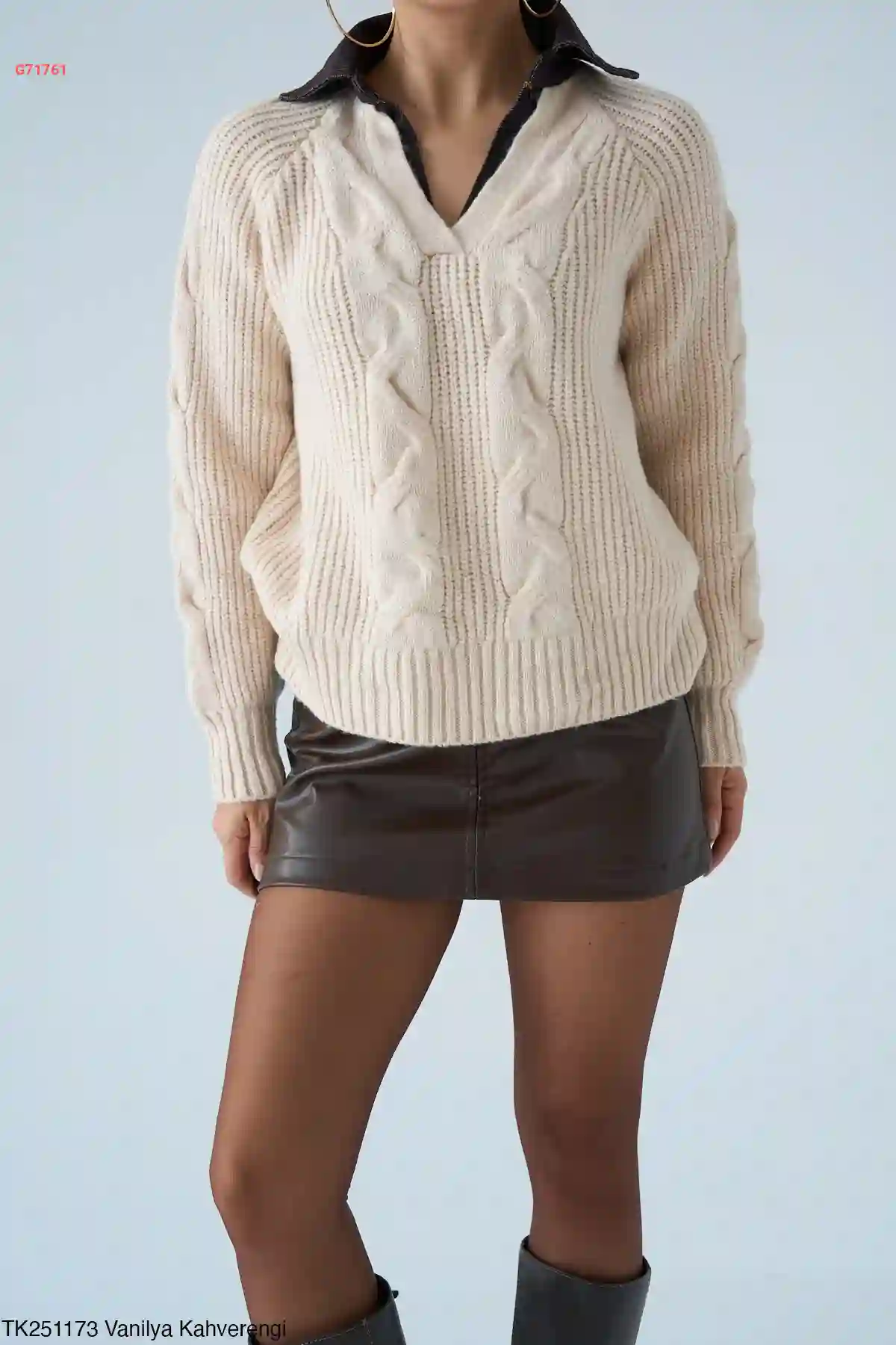 كنزة تريكو مجدولة بياقة قميص