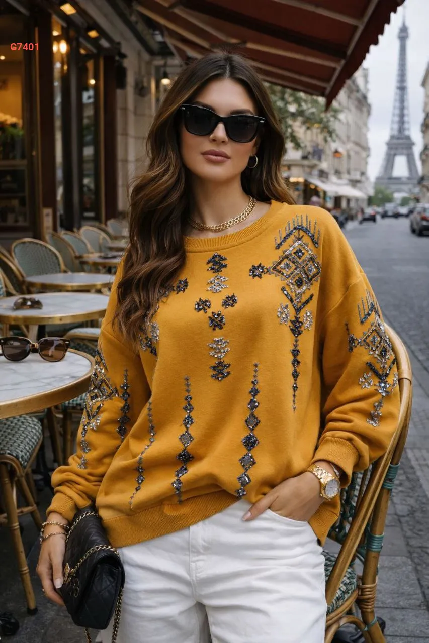 كنزة كم طويل مطرزة