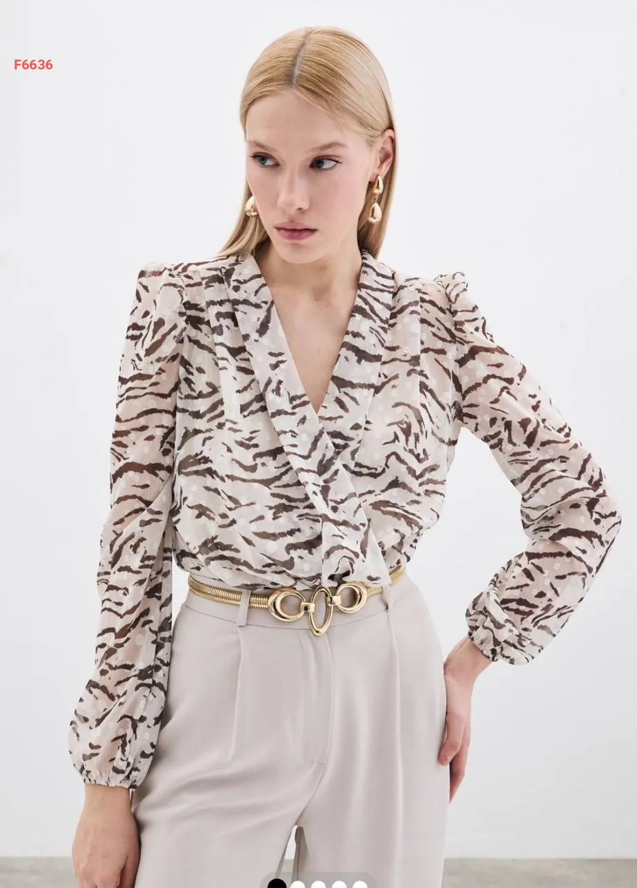 بلوزة منقوشة بياقة قميص