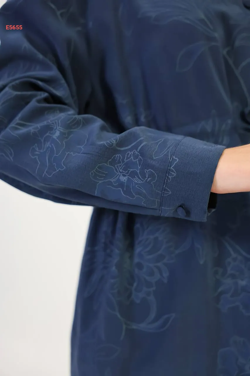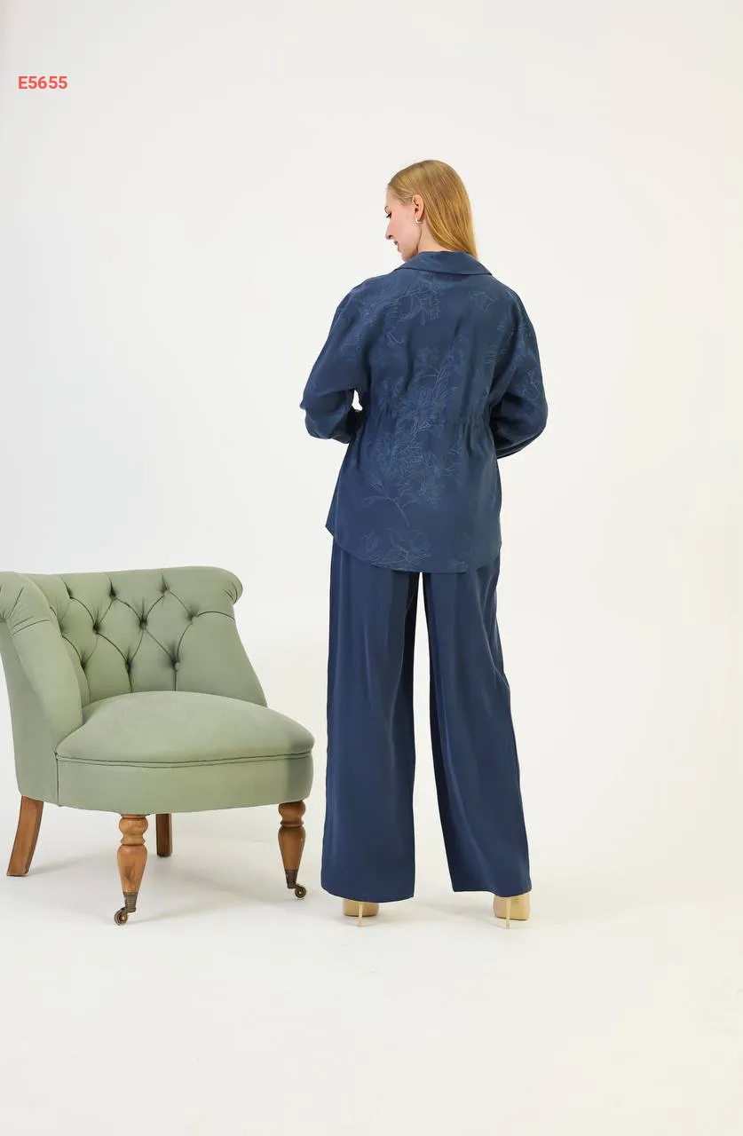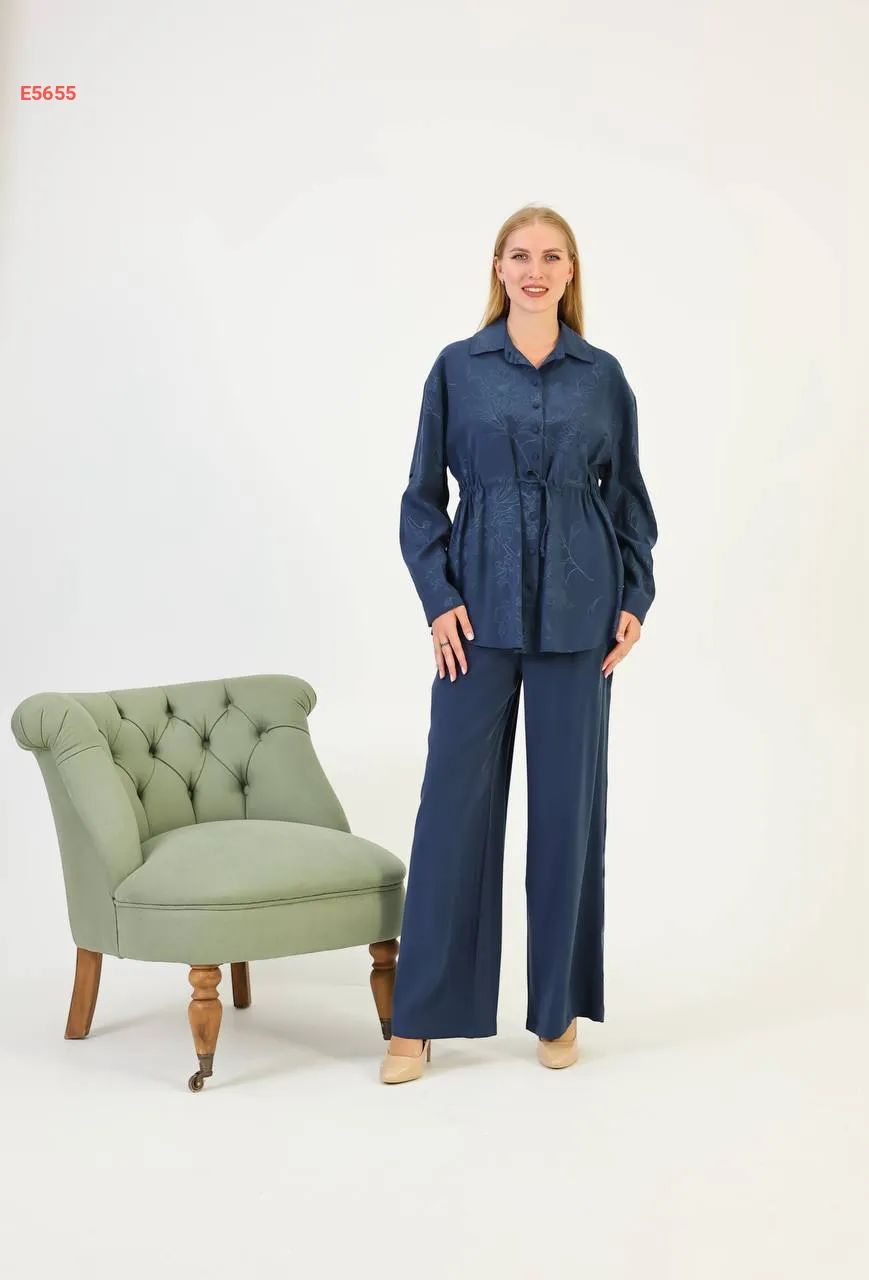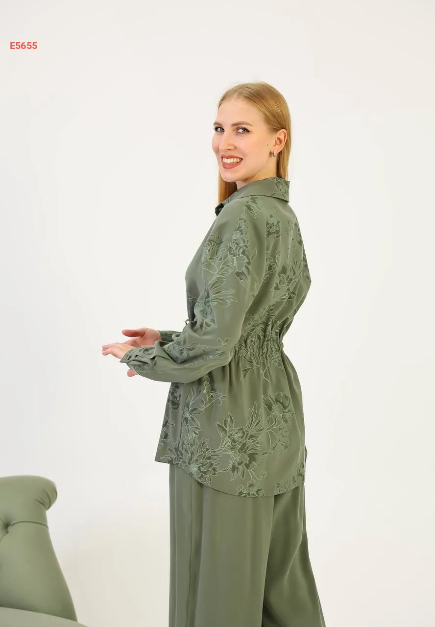 طقم قميص كم طويل منقوش مع بنطال