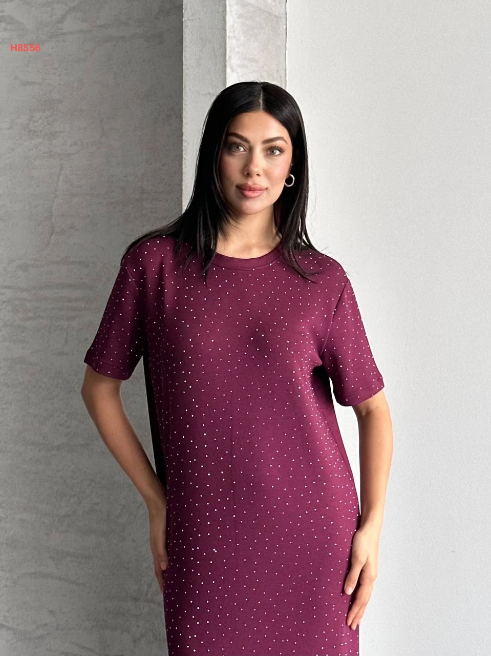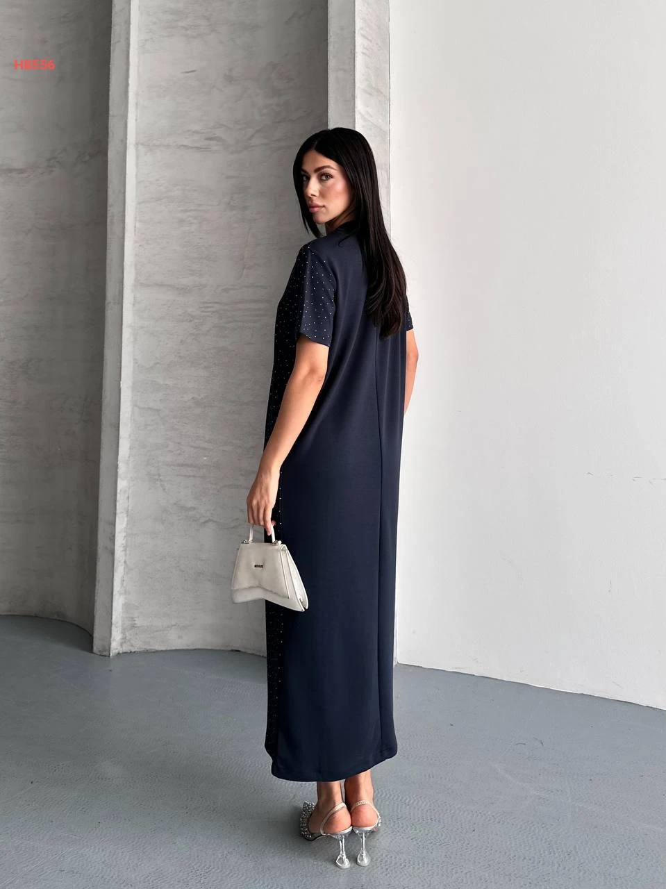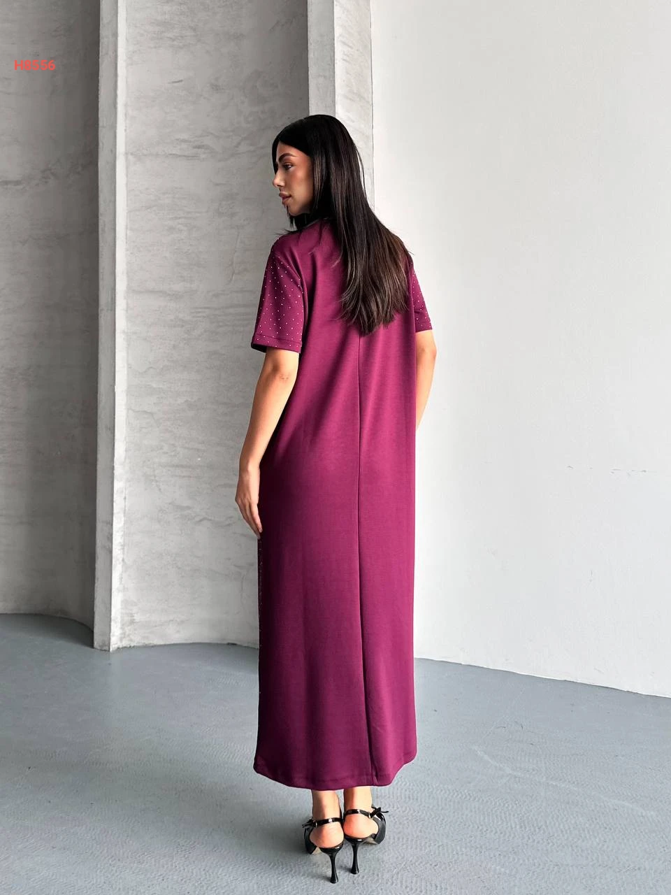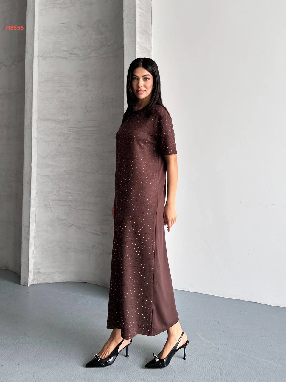 فستان طويل حجري بأكمام قصيرة