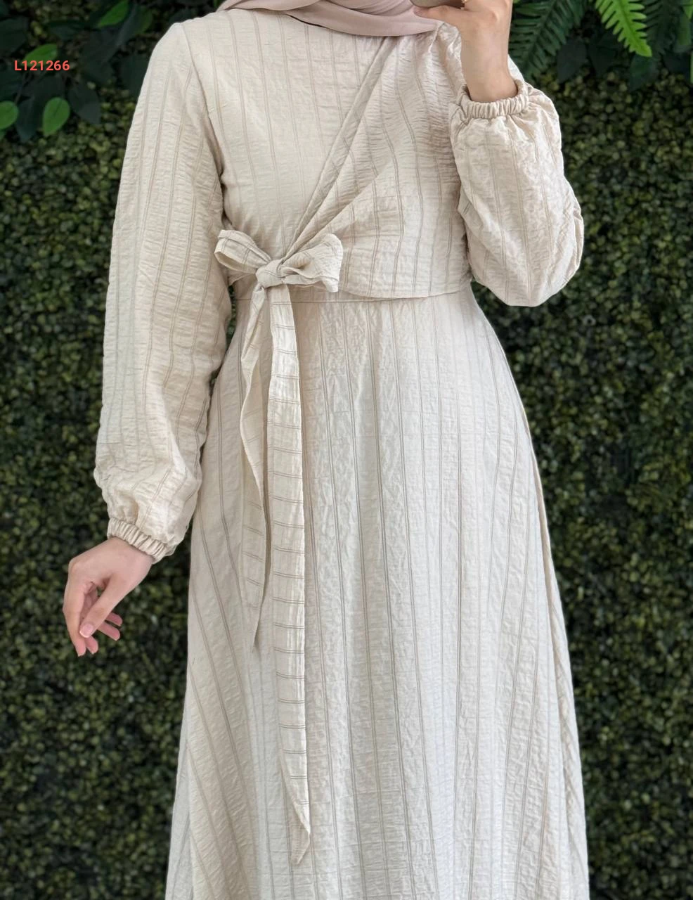 فستان طويل مقلم بربطة جانبية