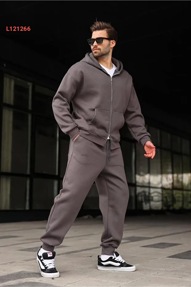 استمتع بالراحة والأناقة مع طقم الإكسفان المكون من سترة بقبعة وسروال من Madmext، لون رمادي داكن، تصميم مبتكر مزود بسحابات مزدوجة لتوفير أقصى درجات الراحة أثناء الحركة. مصنوع من خامات عالية الجودة، يوفر لك بأسلوبه العصري حلاً مثاليًا للاستخدام اليومي أو أثناء ممارسة الرياضة.