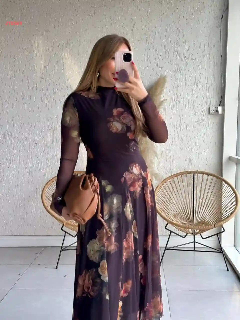 فستان طويل منقوش ورد