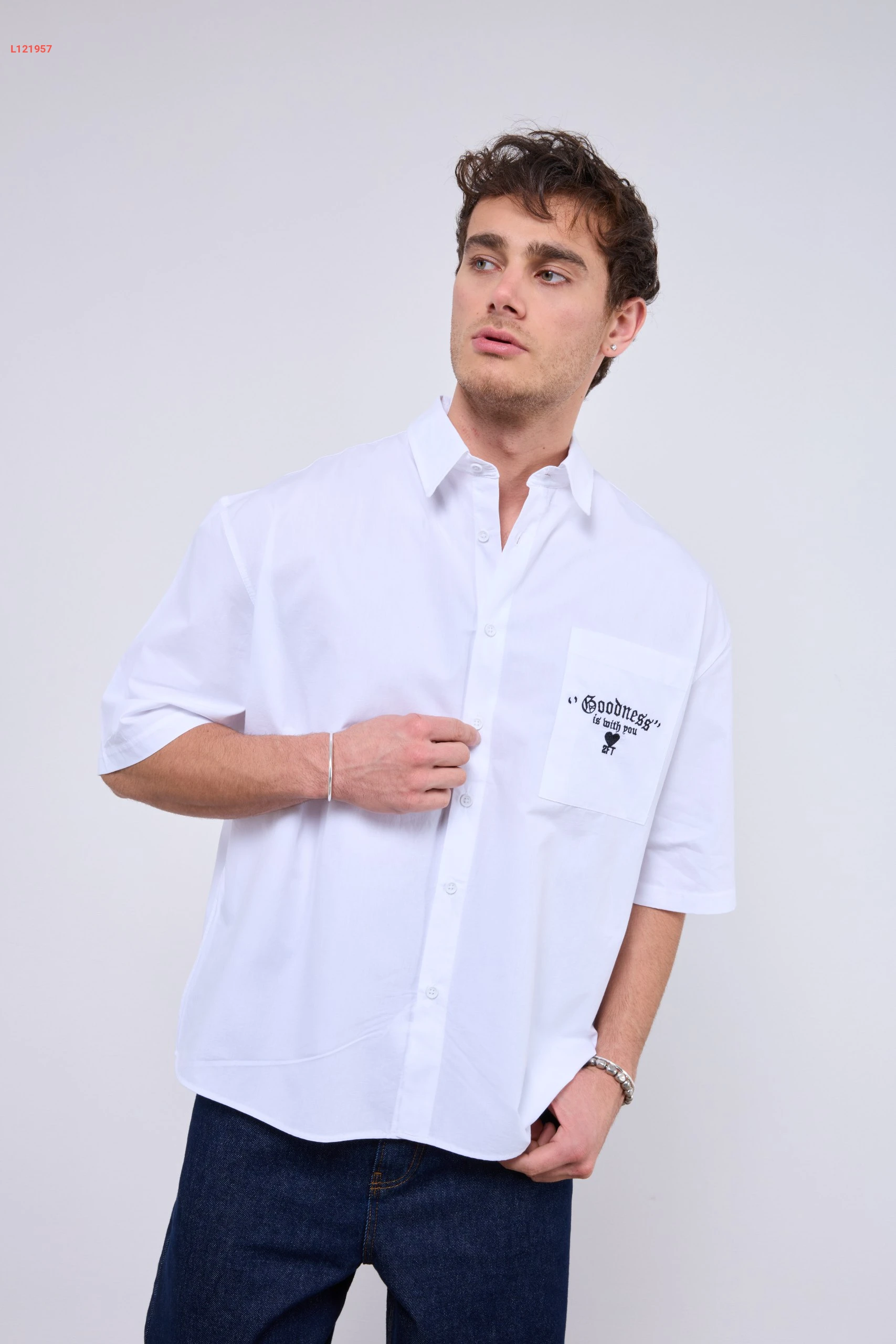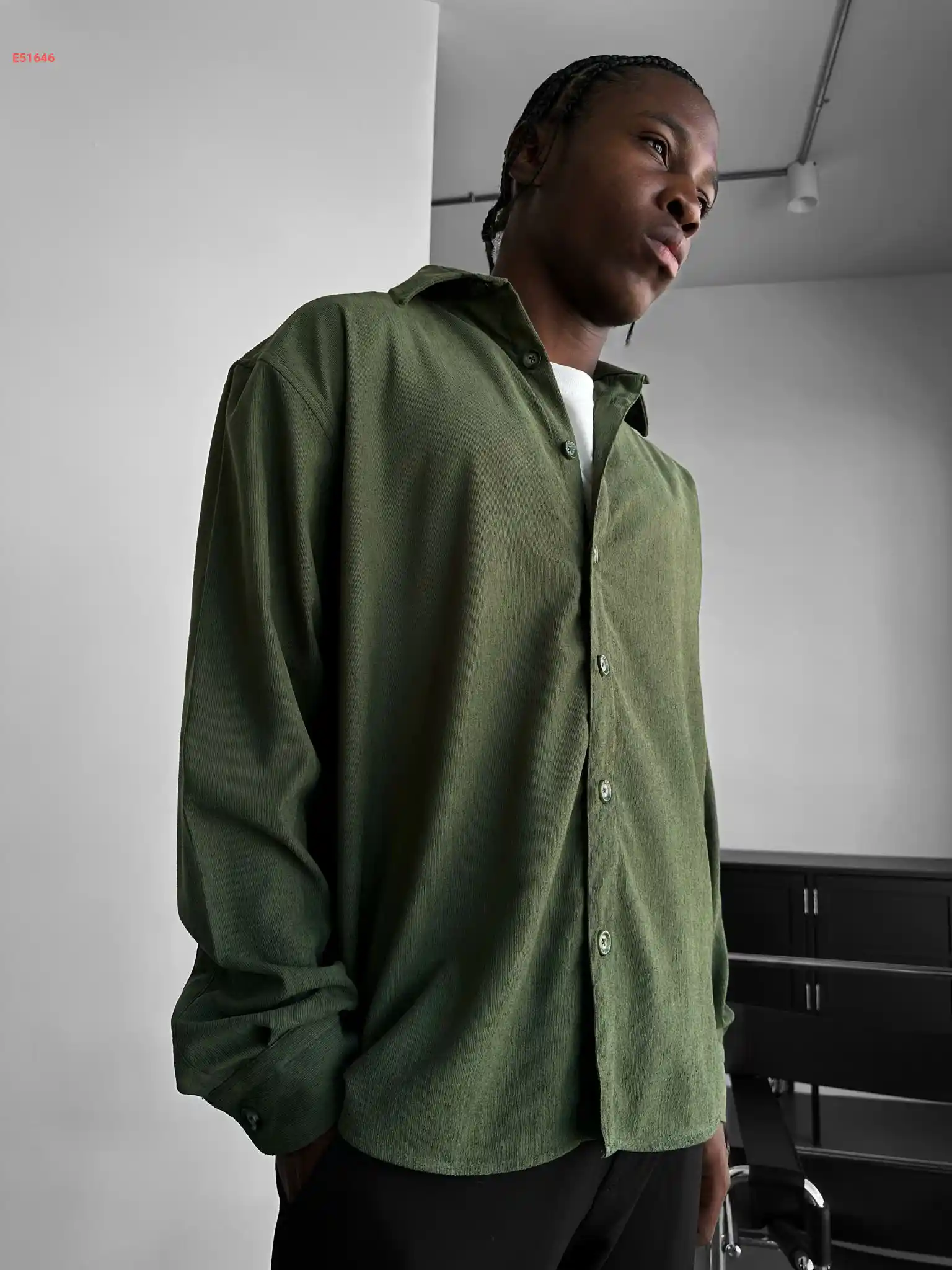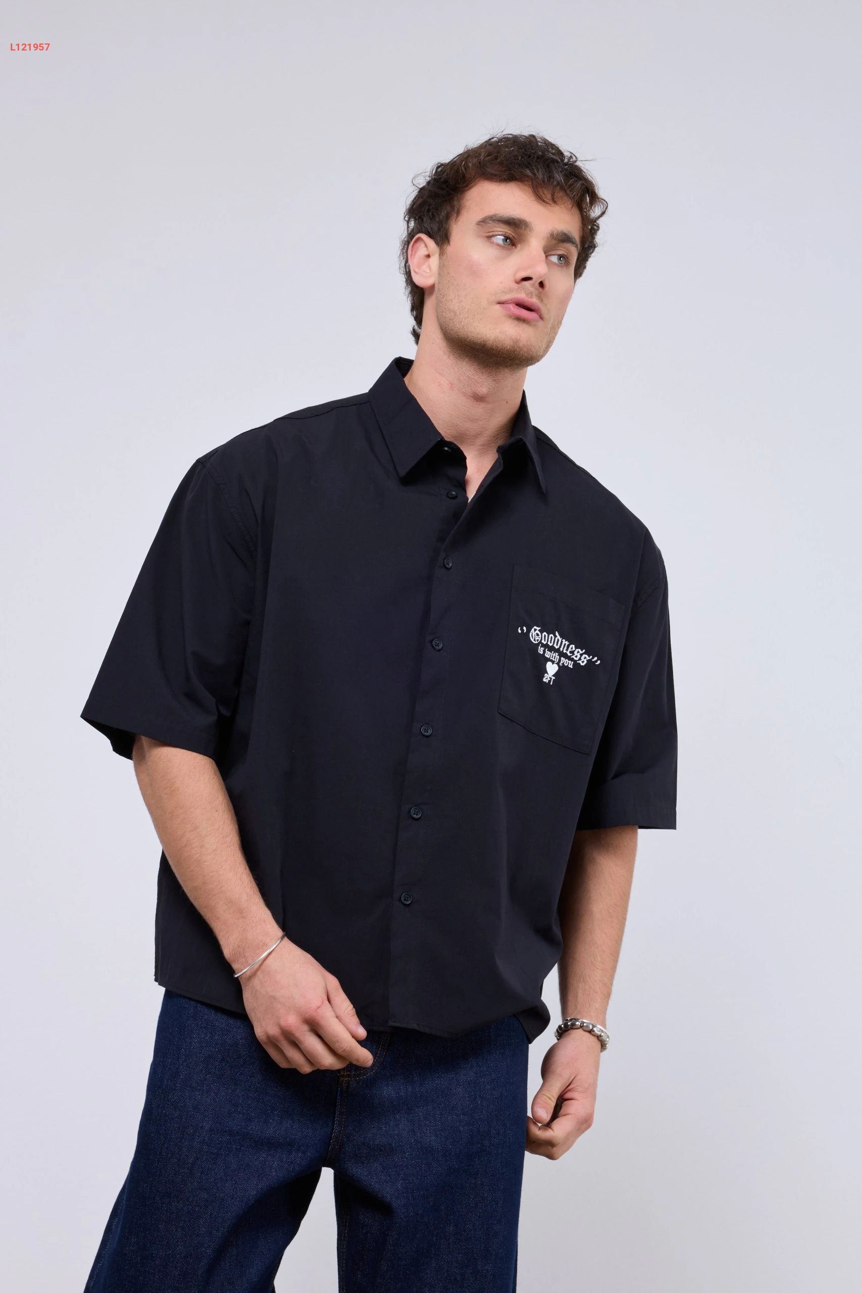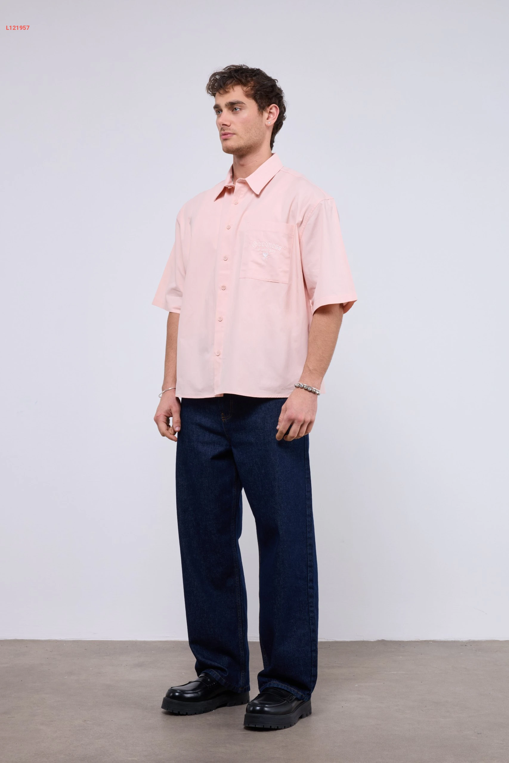 قميص رجالي بتصميم واسع مع جيبة