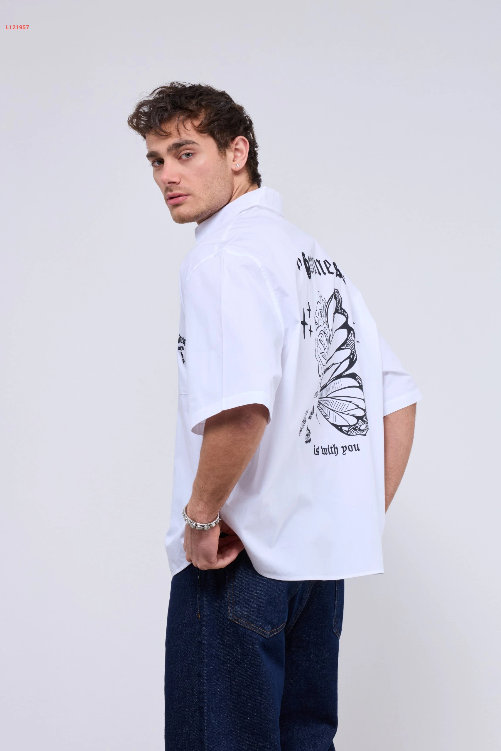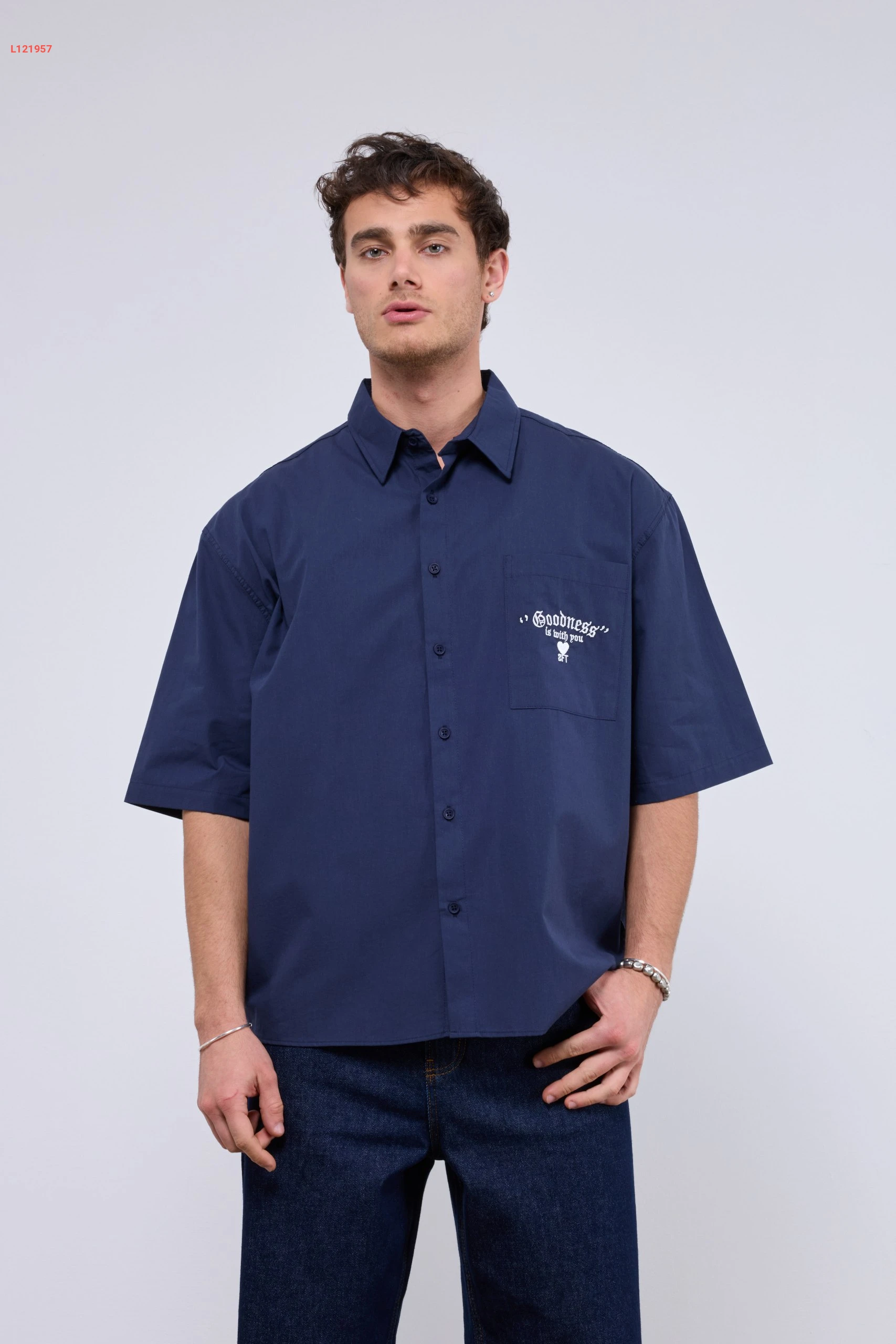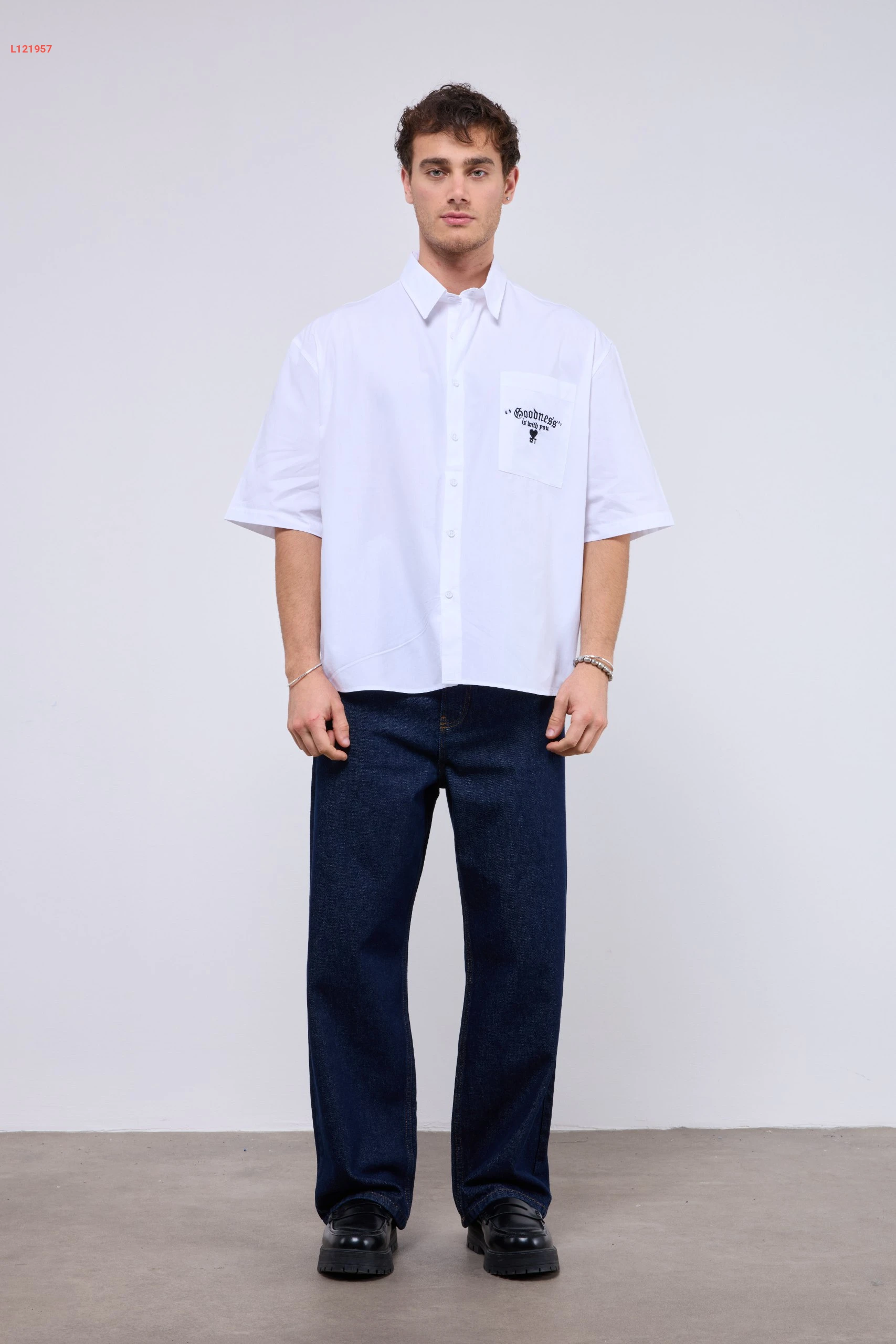 قميص رجالي بتصميم واسع مع جيبة
