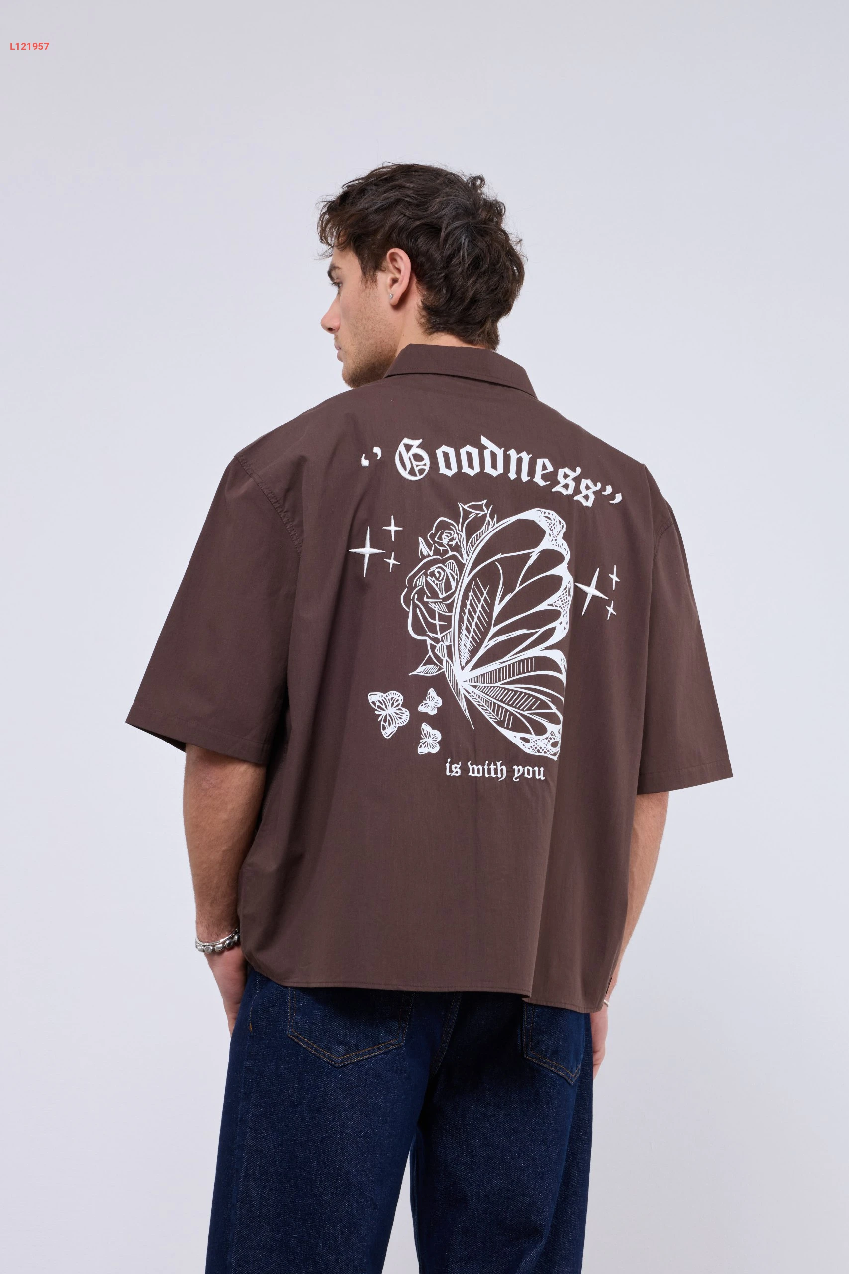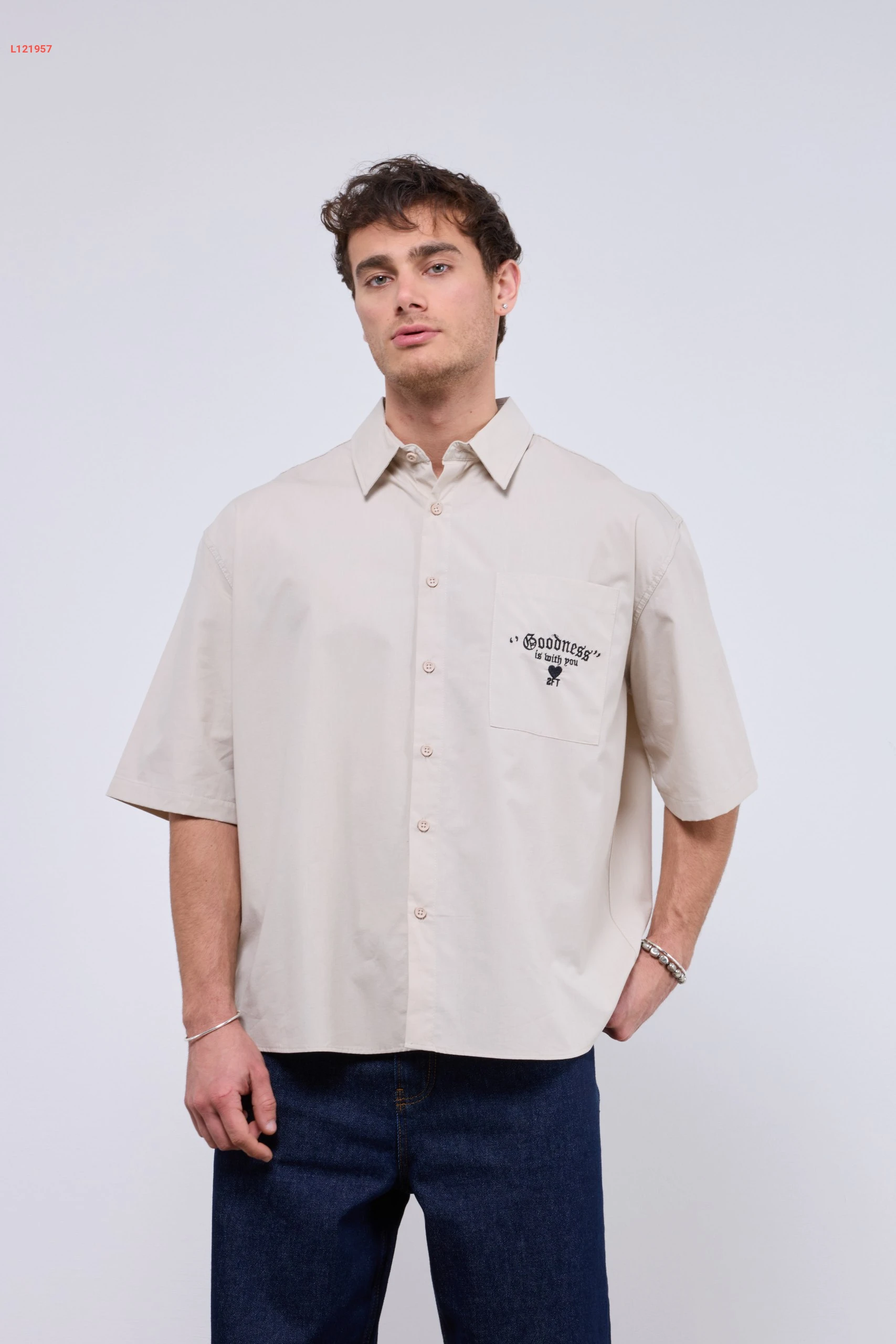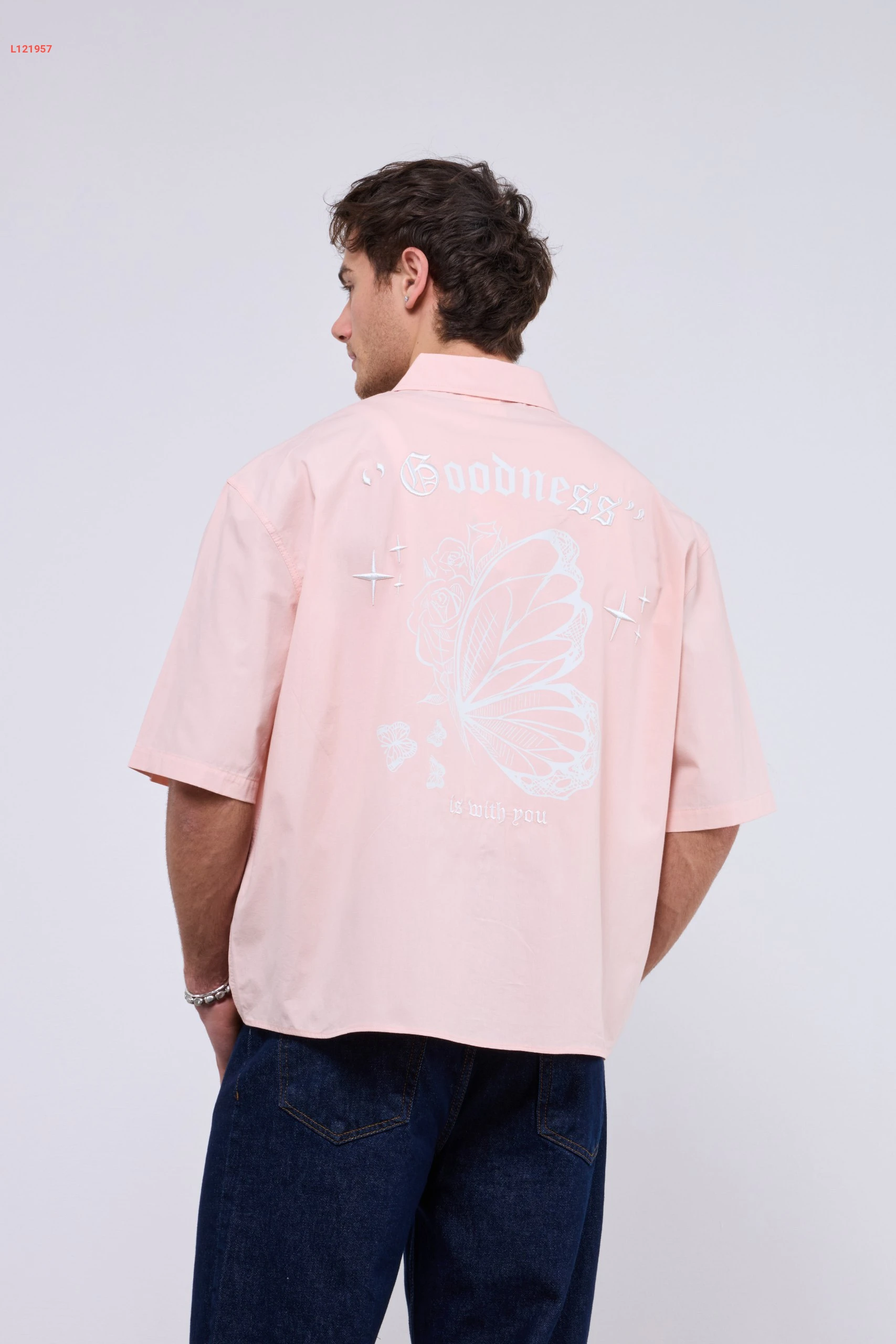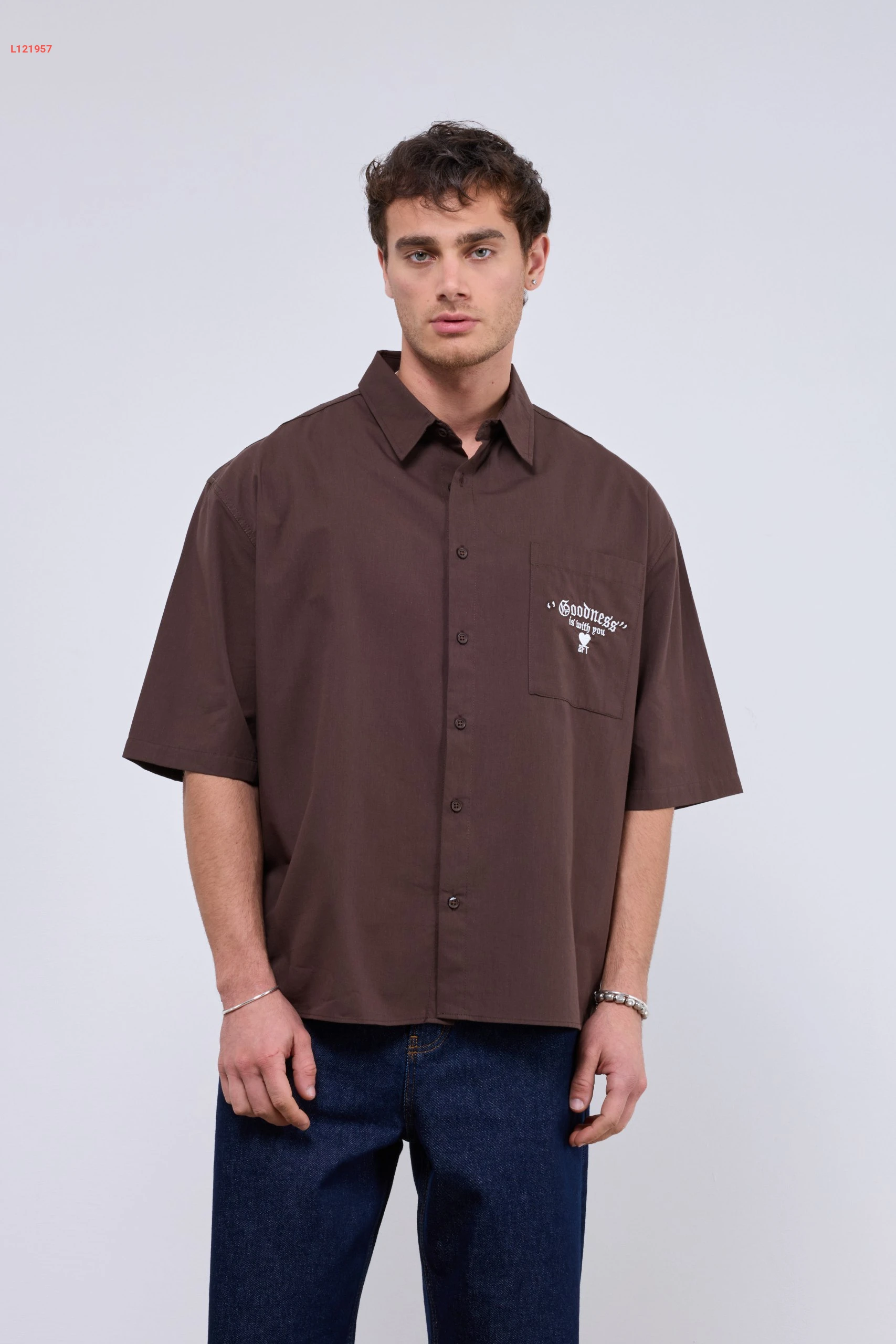 قميص رجالي بتصميم واسع مع جيبة