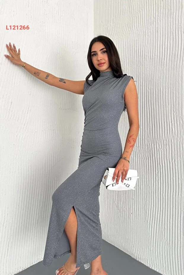 تألقي بأناقتك مع فستان MODAMİNEM الرمادي المزود بتفاصيل لامعة! تصميمه الدرامي مع التجاعيد يضمن لك إطلالة فريدة ومثيرة في جميع المناسبات. اجعلي كل الأنظار تتجه إليك مع هذا الفستان الرائع الذي يضفي لمسة من السحر على مظهرك.