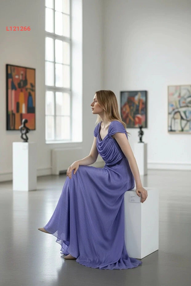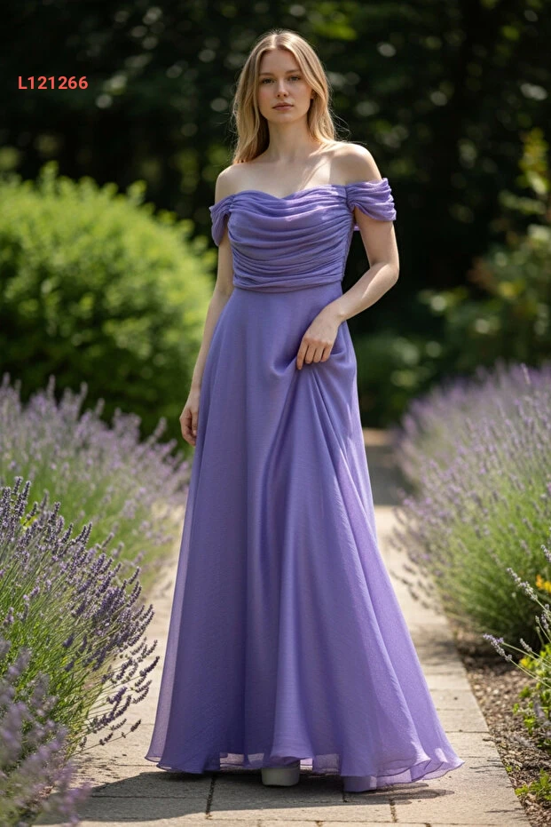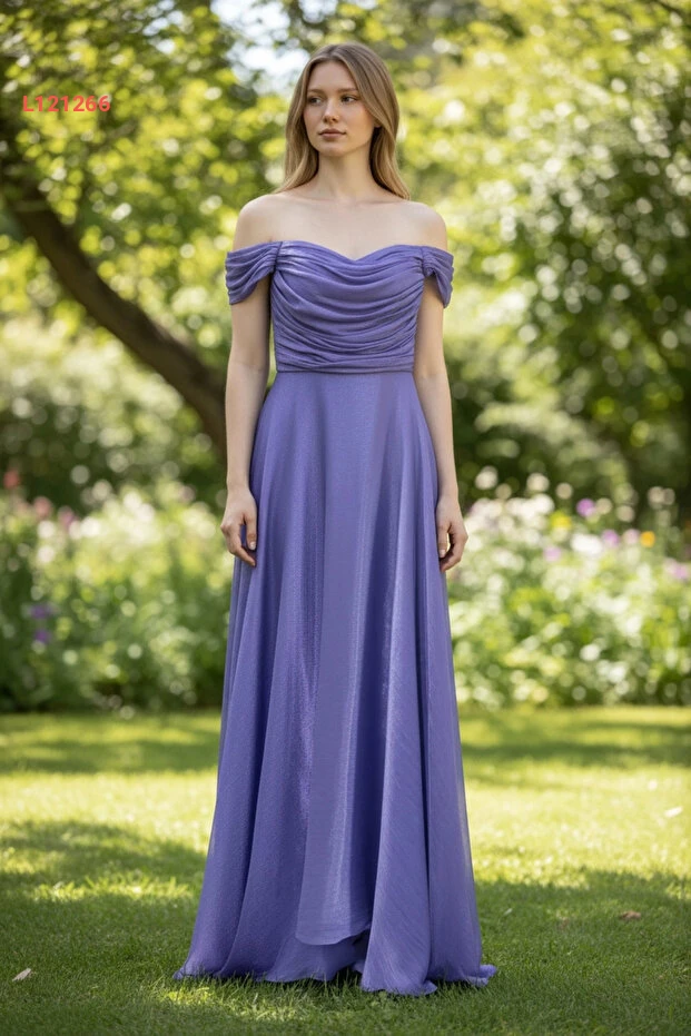 فستان سهرة نسائي طويل باللون الأرجواني