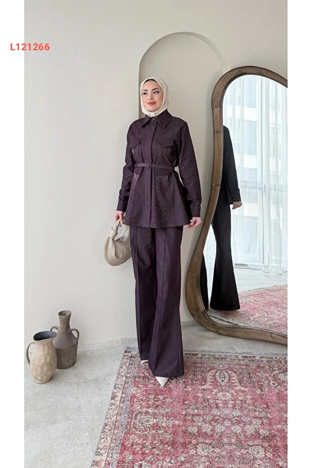 اكتشفي أناقتك مع طقم Molly Nelly، الذي يجمع بين تصميم رائع من القماش الجلدي الملون وطاقم البنطلون الكتان المنقوش. يتميز هذا الطقم بحجره المطبوعة الفريدة التي تضيف لمسة من التميز والجاذبية، مما يجعله خيارًا مثاليًا للمناسبات اليومية والسهرات. ارتدي الثقة والأناقة مع هذا الطقم المذهل!
