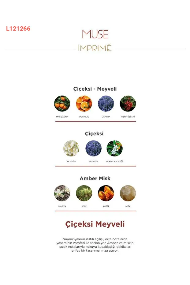 استمتع بتجربة عطرية فريدة مع عطر Imprime Muse Eau de Parfum للنساء بتركيز 50 مل، الذي يجمع بين نفحات الأزهار والفواكه ليمنحك إحساساً من الانتعاش والجاذبية. يتكون من لمسات ساحرة من العنب البري، واللافندر، والياسمين، مع تداخلات دافئة من الفانيليا والمسك والعنبر، مما يجعله الخيار المثالي للسيدات اللواتي يرغبن في ترك انطباع دائم.