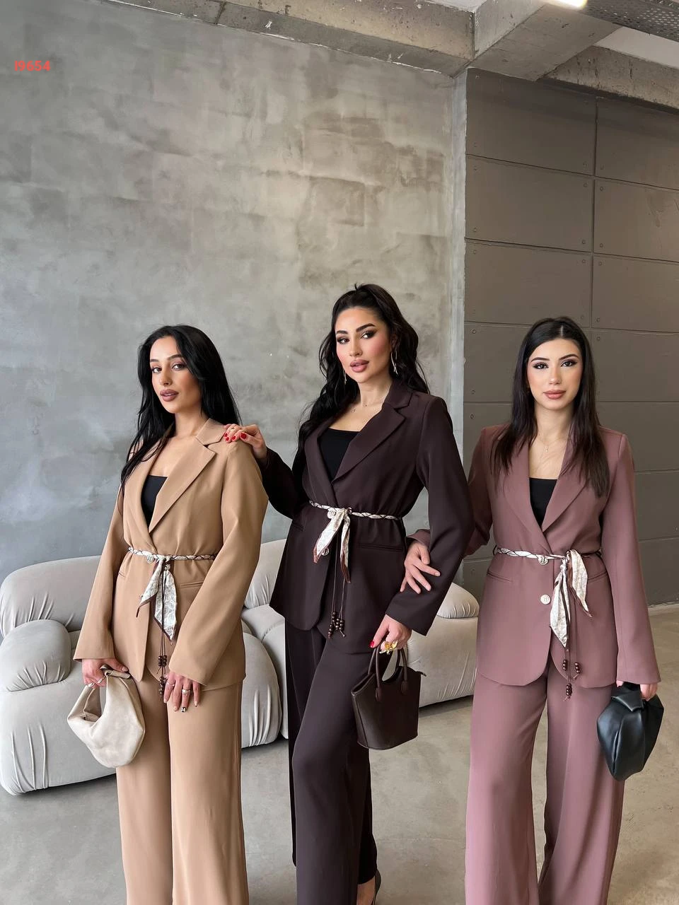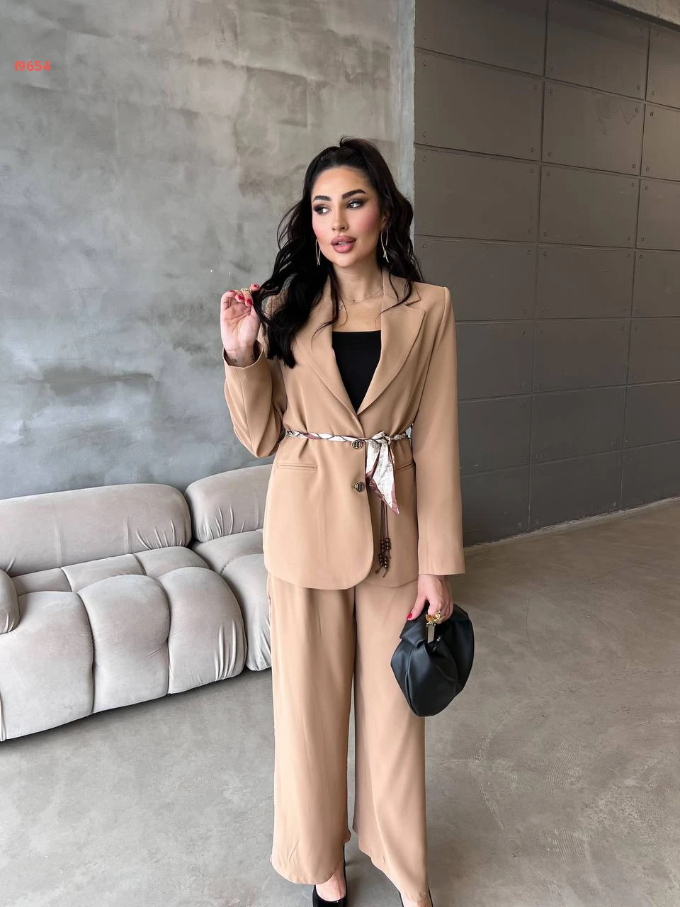 طقم بنطال وبليزر بزنار وتفاصيل فولار