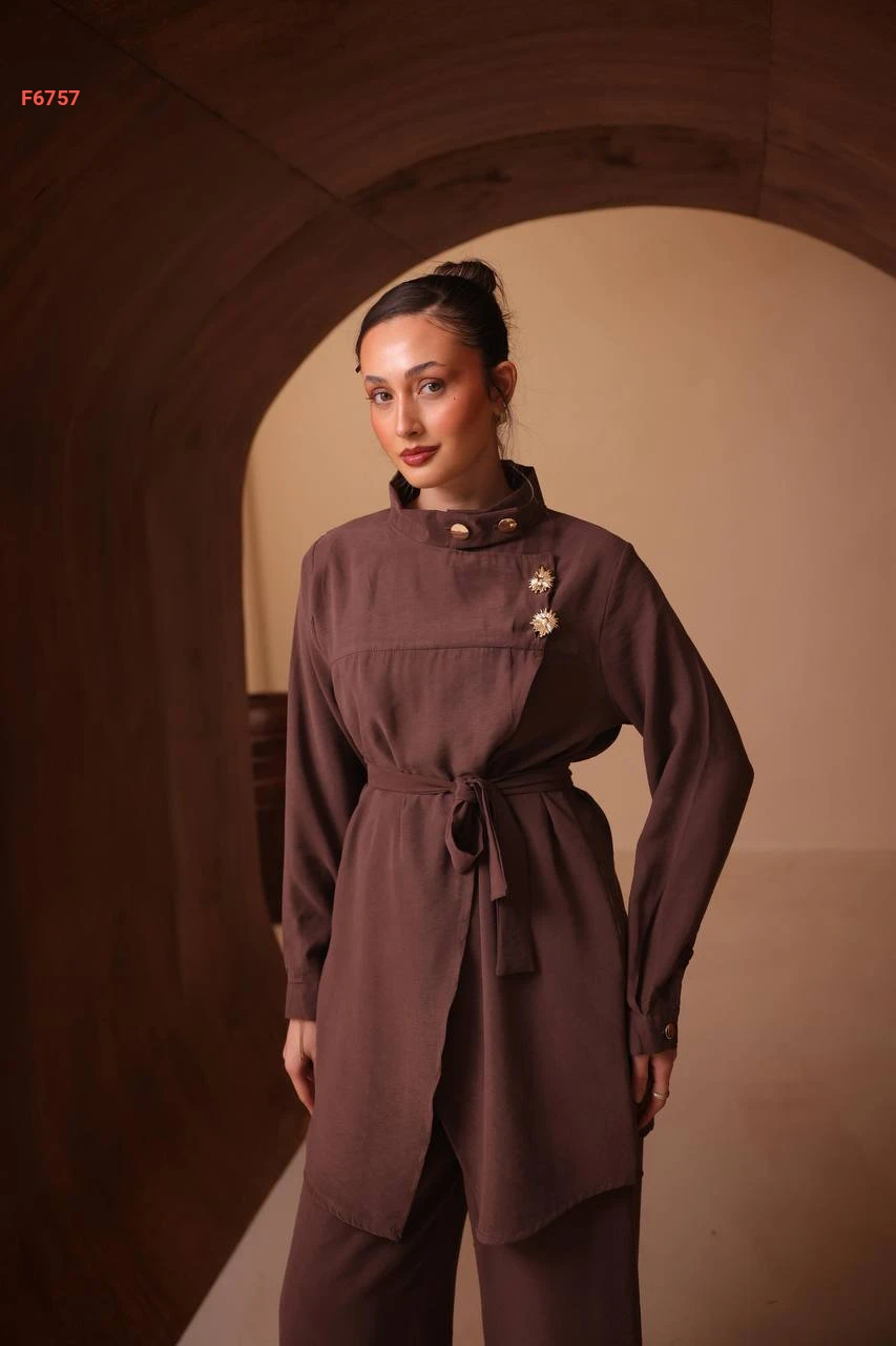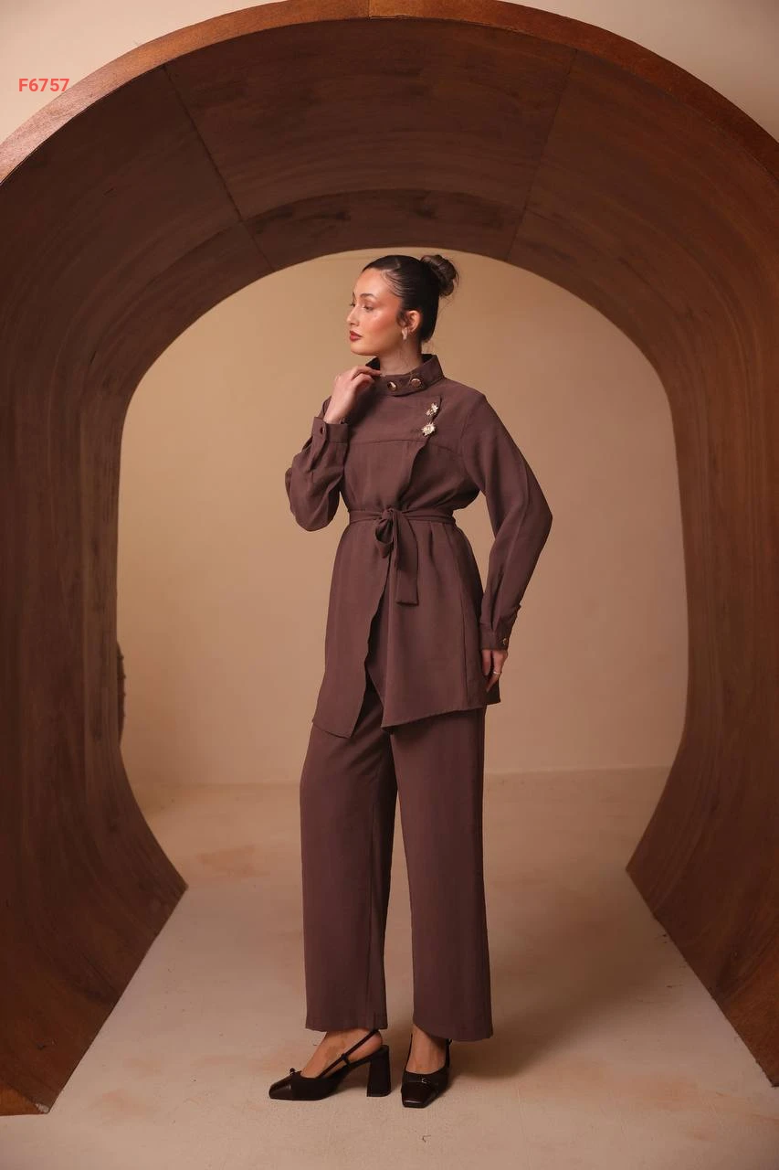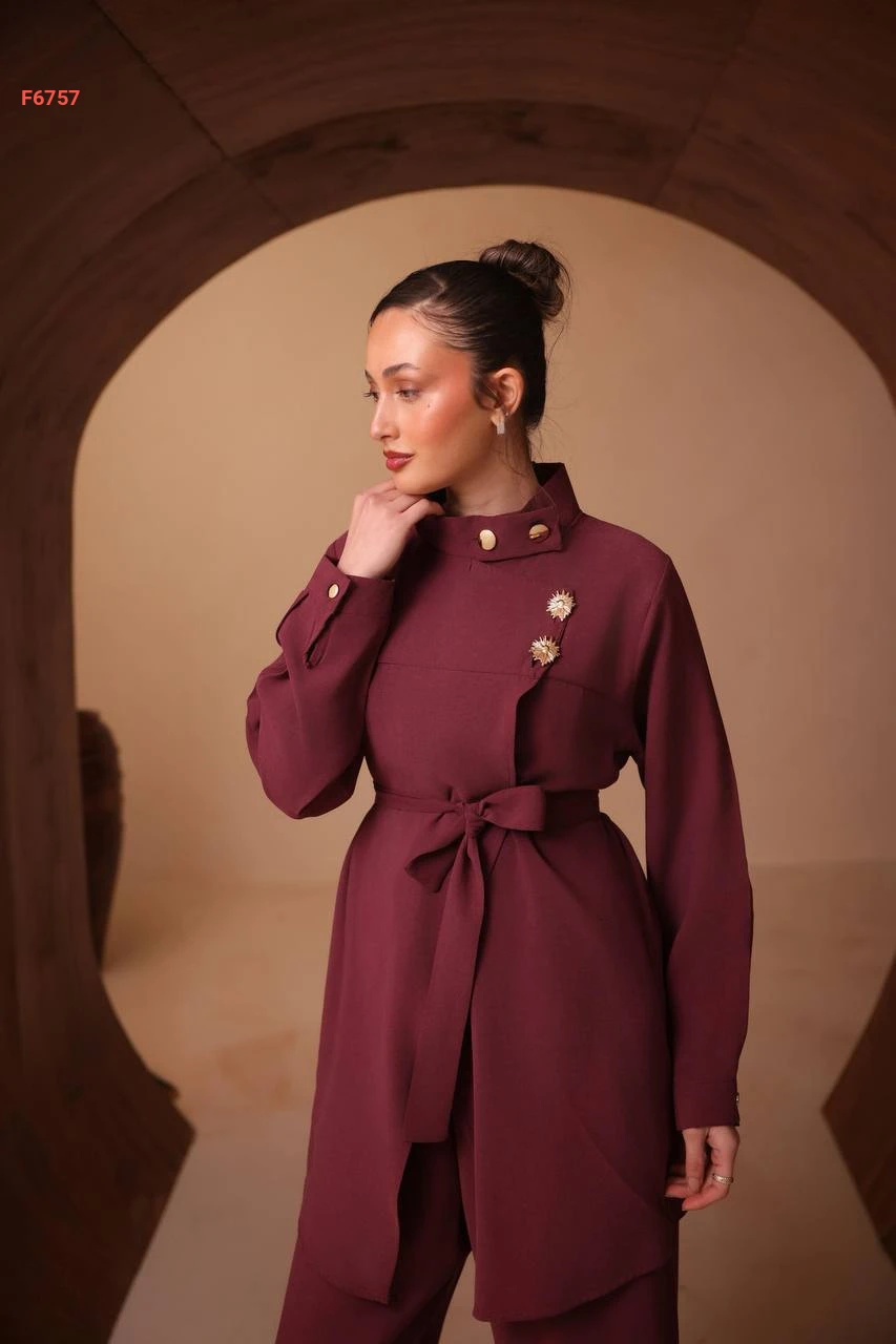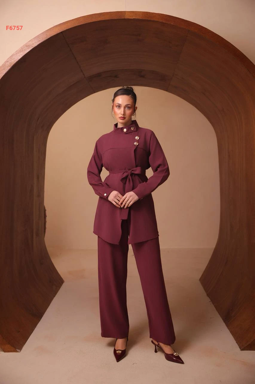 طقم بنطال وقميص لف باكسسوار دهبي