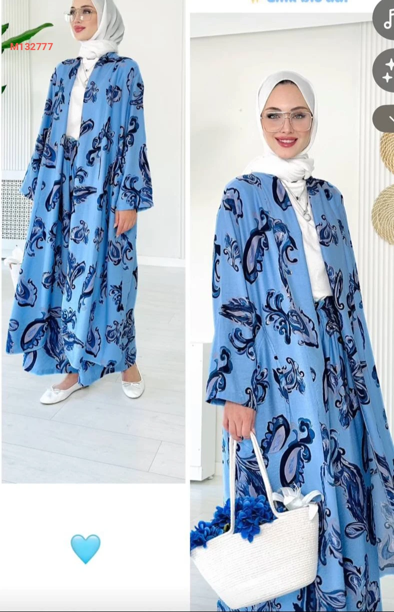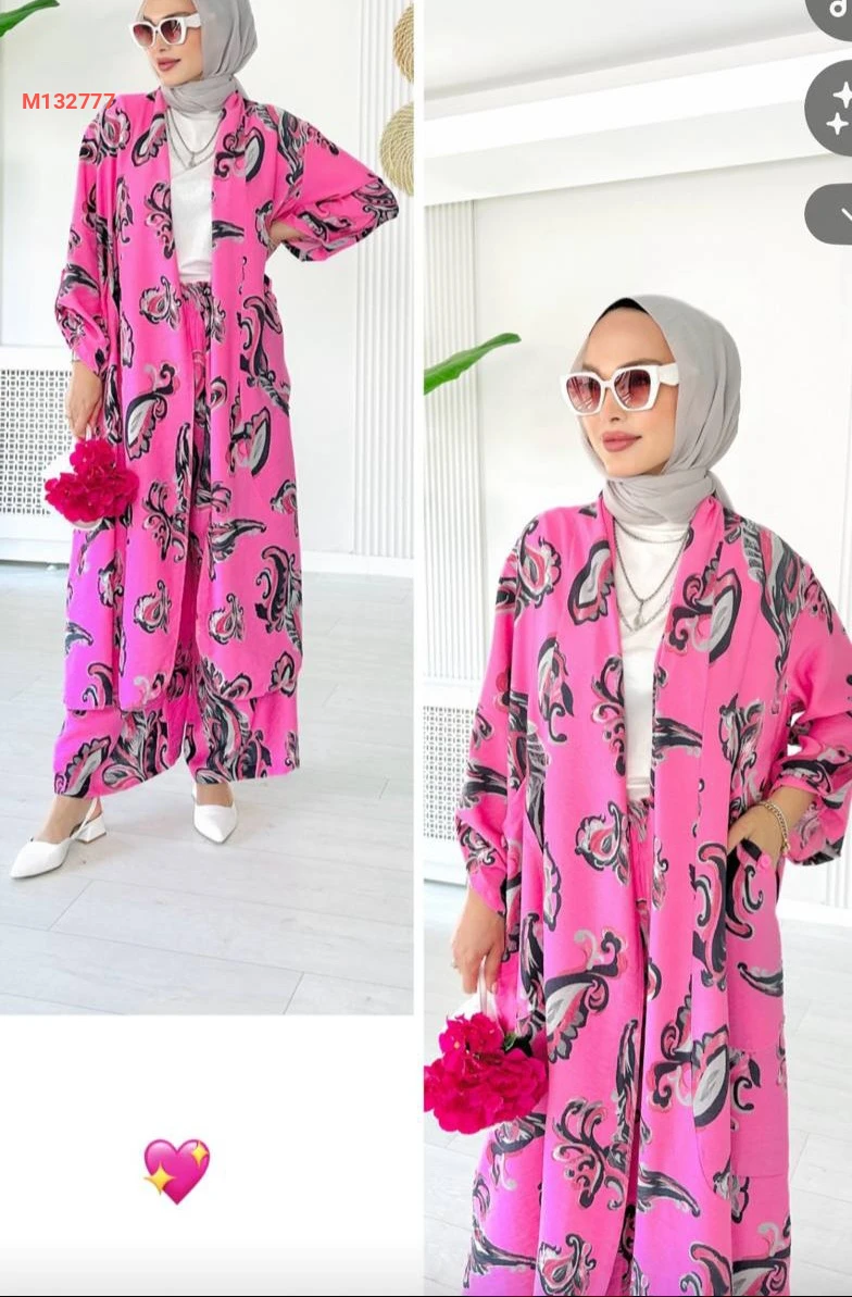 طقم بنطال منقوش مع كيمون
