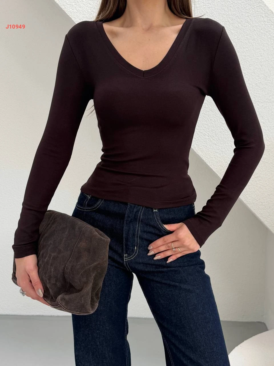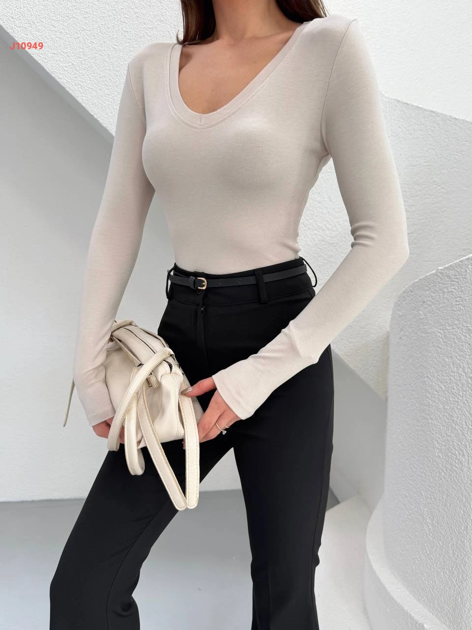 بلوزة سادة بياقة مكشوفة
