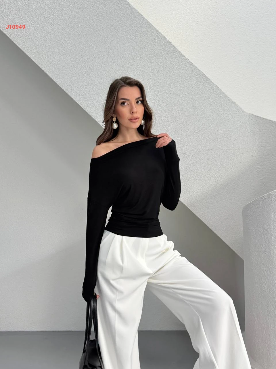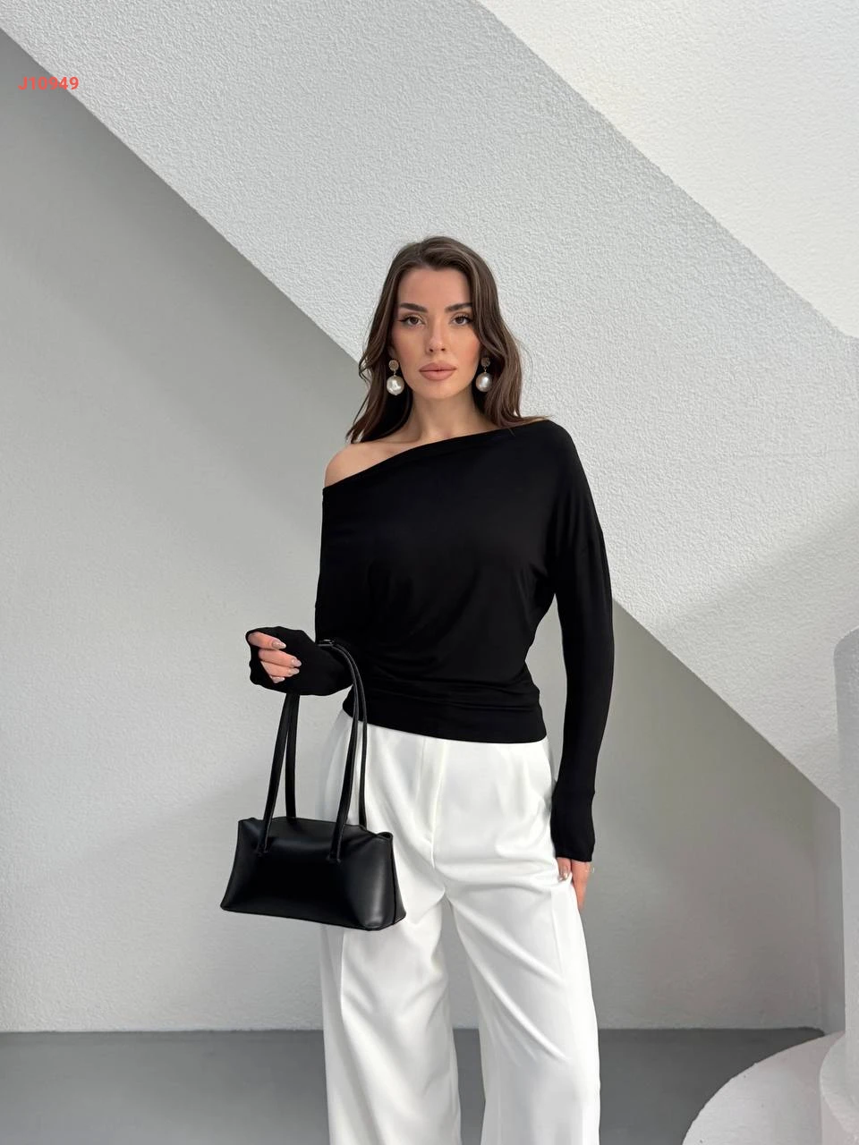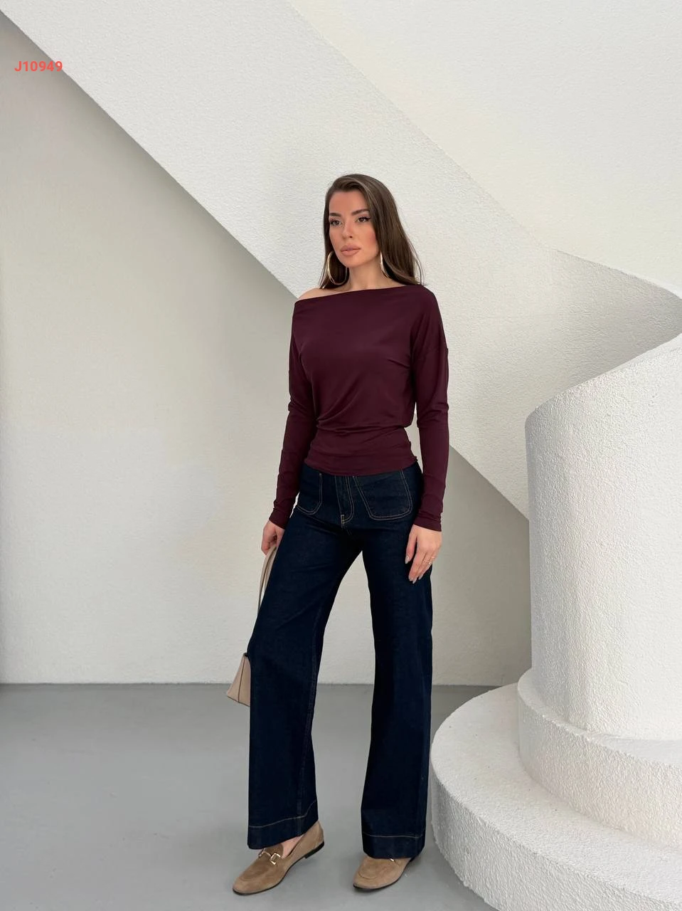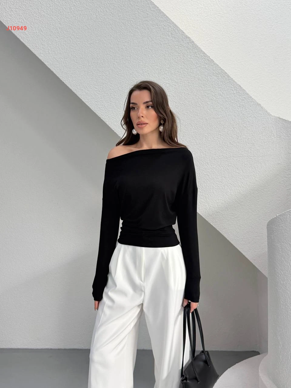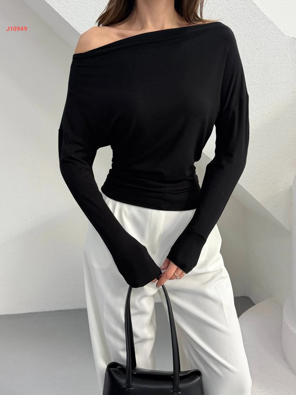 كنزة سادة بكتف مكشوف