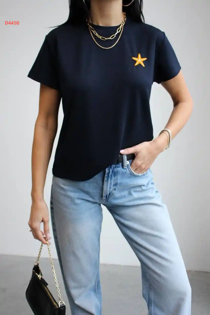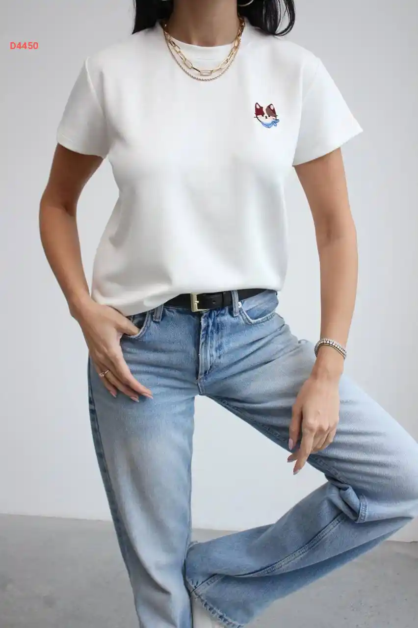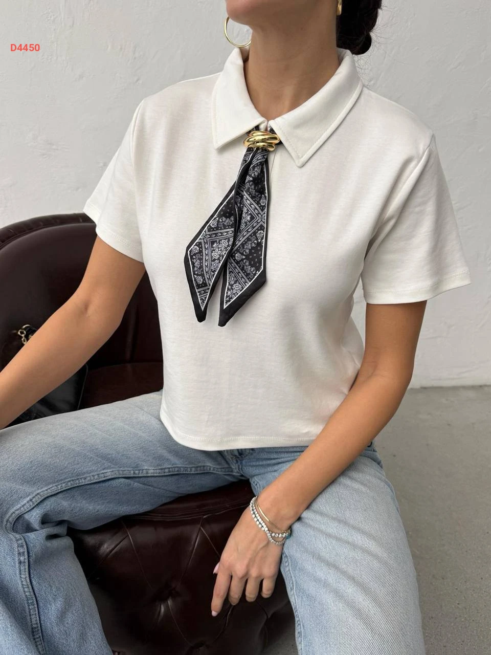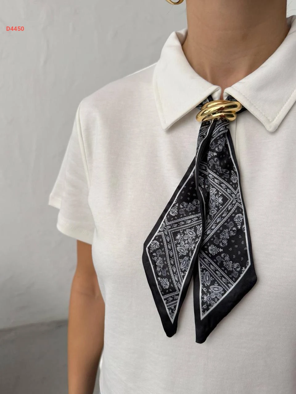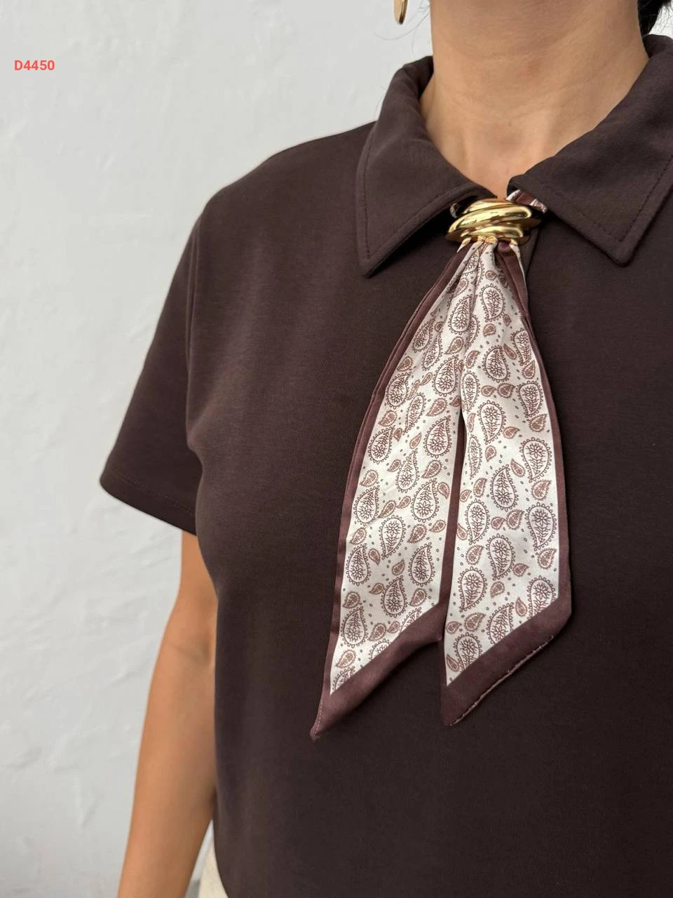 تيشيرت سادة بياقة قميص مع فولار