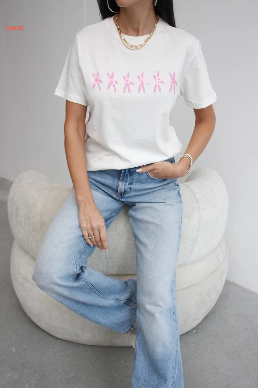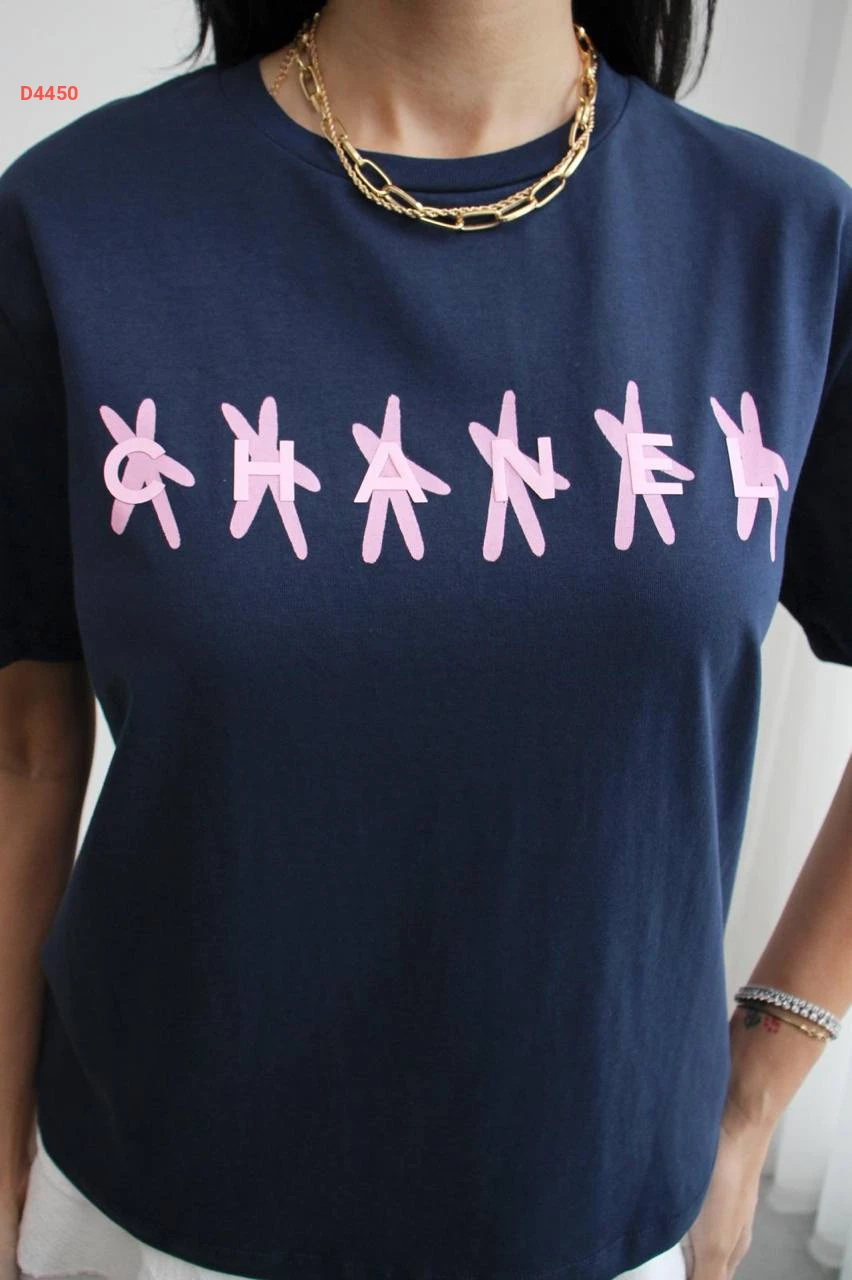 تيشيرت نسائية سادة شانيل بالزهر