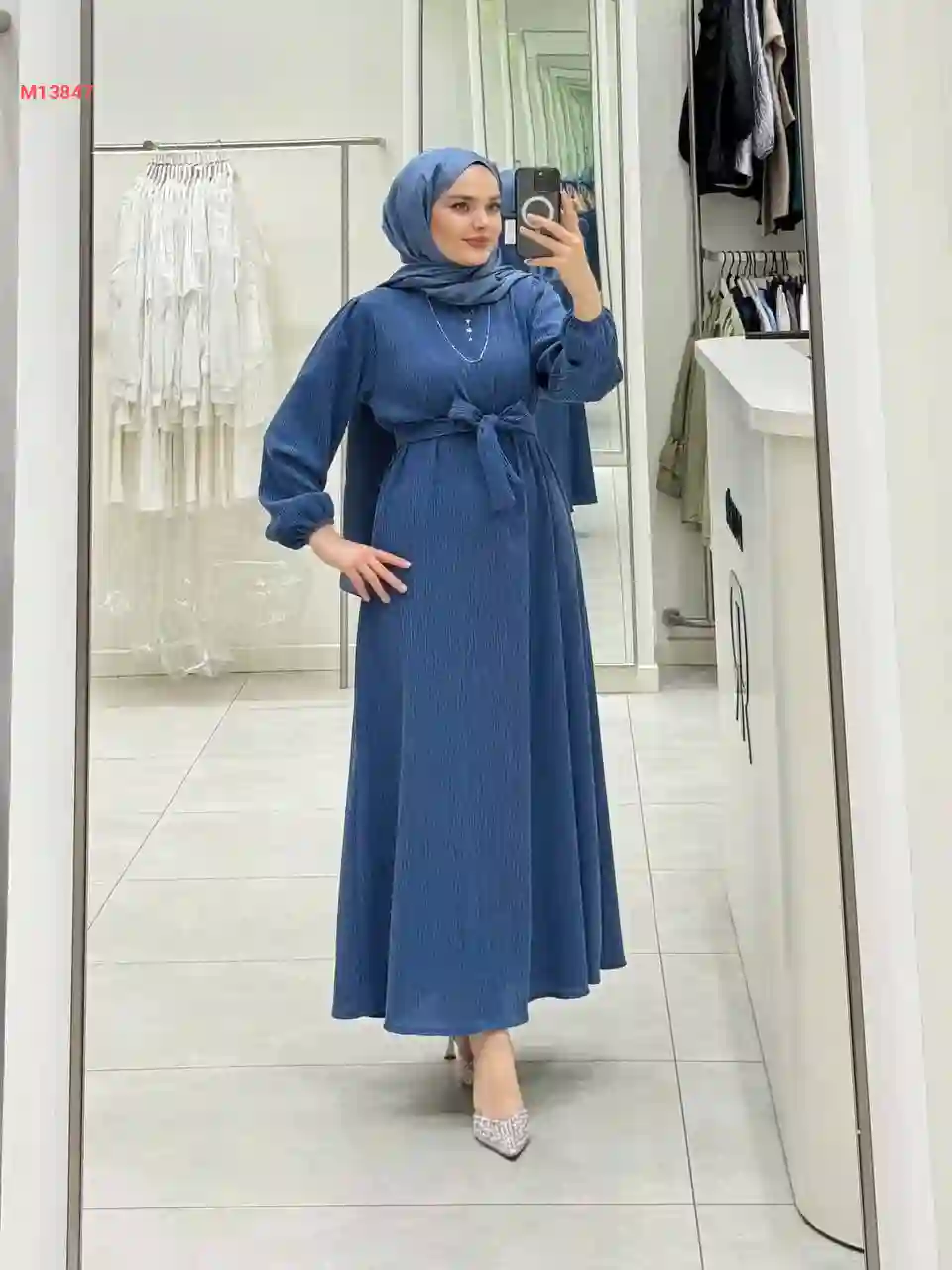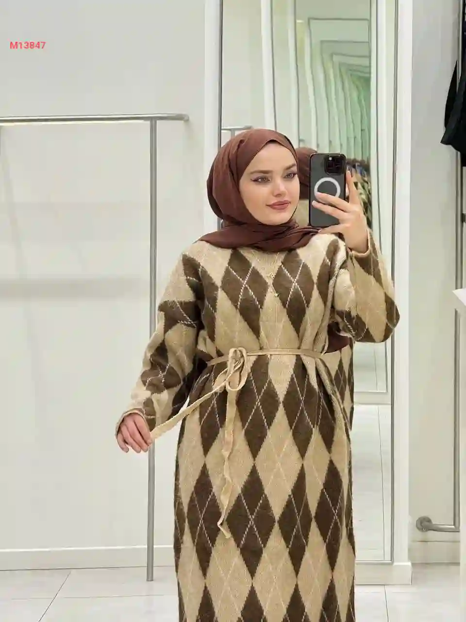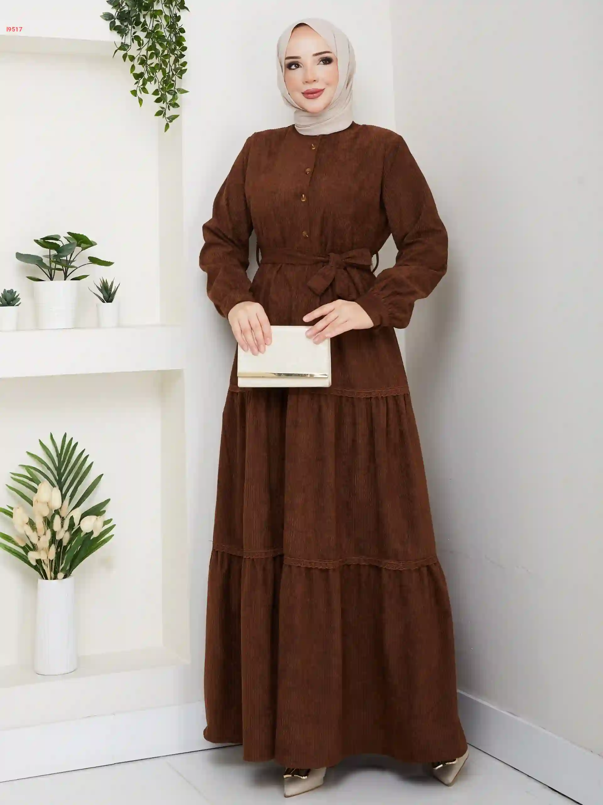 فستان شتوي طويل مع زنار