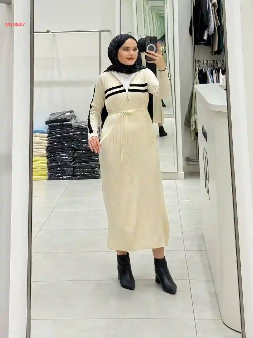 فستان تريكو طويل بسحاب عالقب...