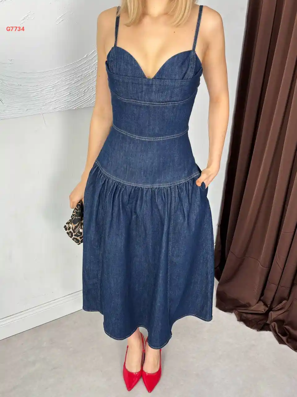 فستان جينز طويل بحمالات رفيع...
