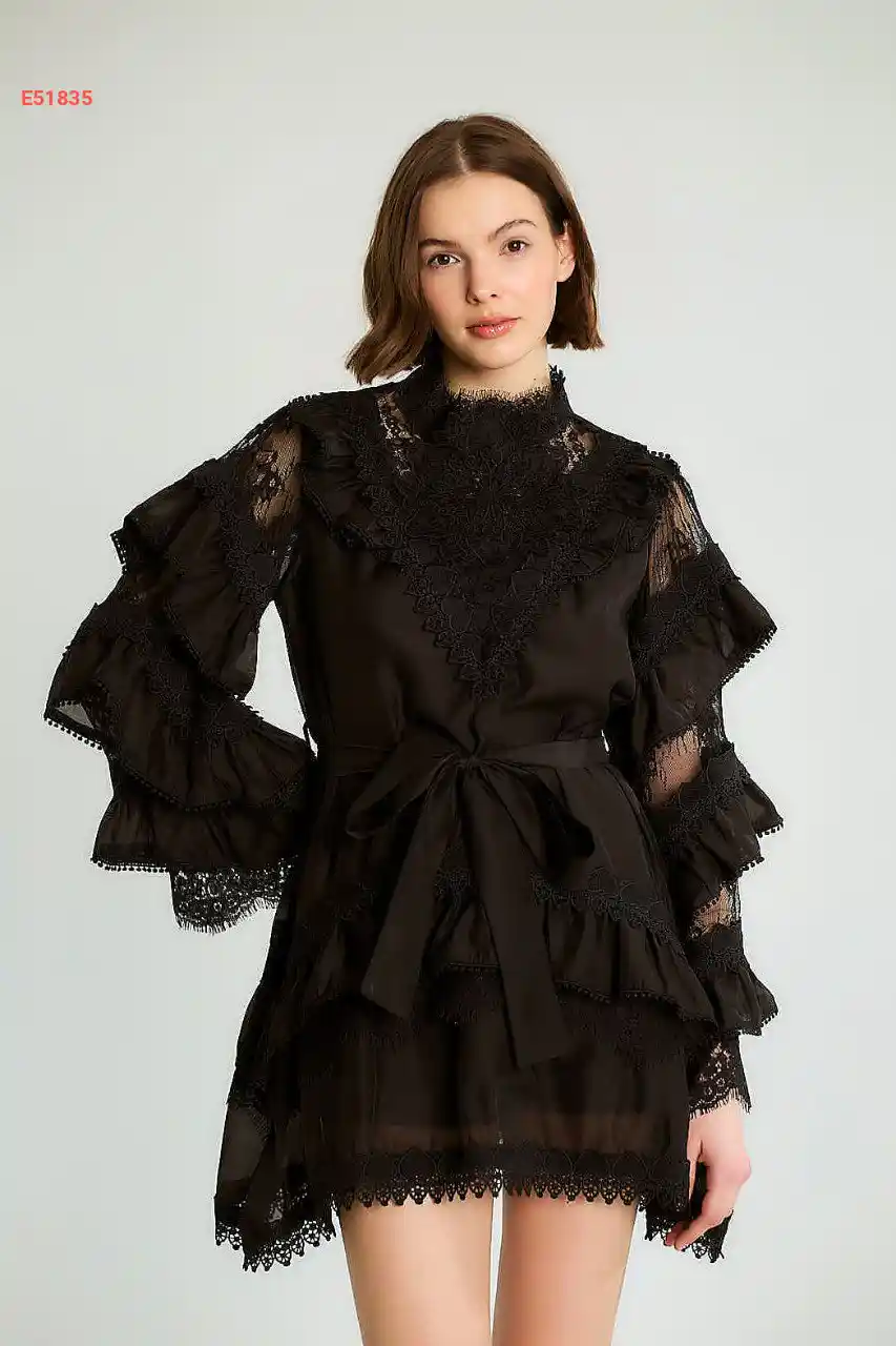 فستان قصير كشكش مع تطريز