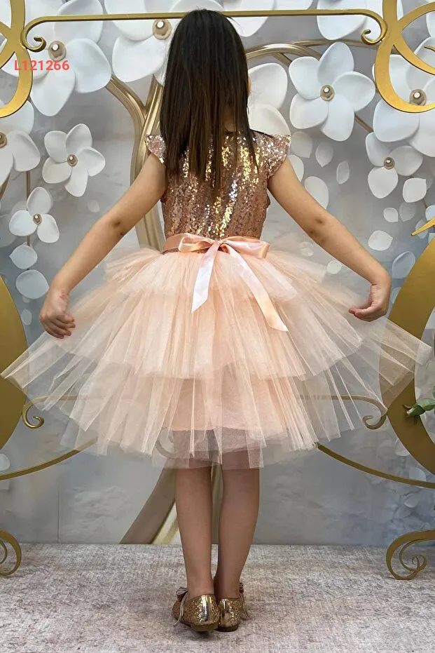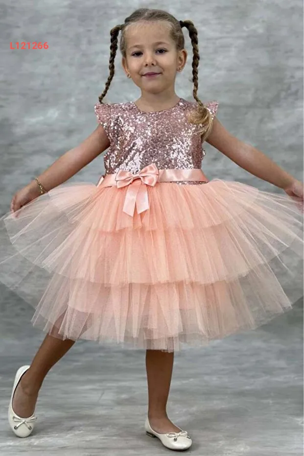 تألقي مع فستان Riccotarz الرائع للبنات، المصنوع من قماش السومون الناعم والمزود بتفاصيل بلبلة مميزة. يتميز بتصميم متدرج رائع يجمع بين الأناقة والراحة، مما يجعله خيارًا مثاليًا لمناسباتك الخاصة من عمر 4 إلى 7 سنوات. اجعلي صغيرتك تشعر وكأنها أميرة في أي احتفال ترتديه!